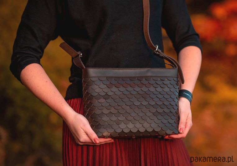 Torebka w rybią łuskę wykonana z wysokiej jakości skóry naturalnej garbowanej roślinnie, która wykonana została bez użycia szkodliwego chromu.