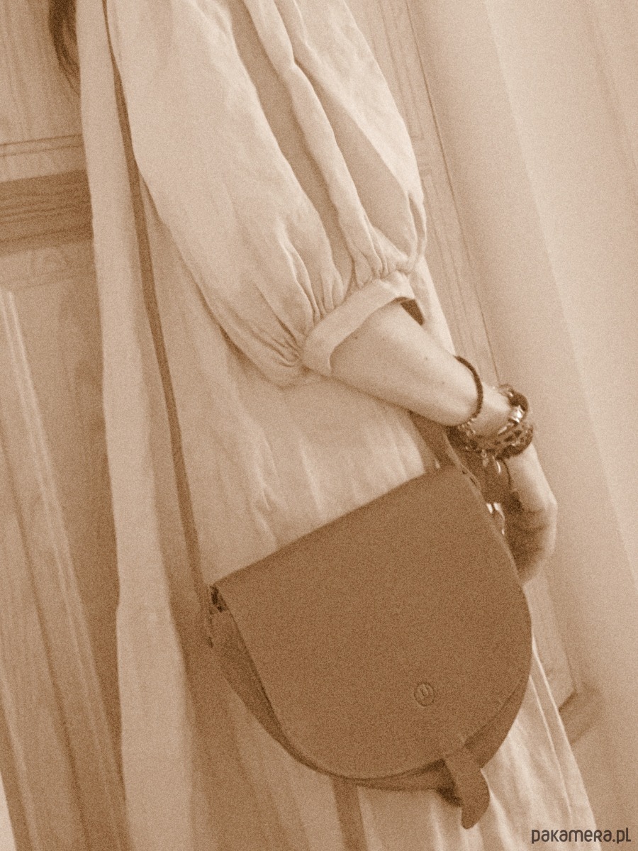 Mała torebka skórzana CASCO w stylu listonoszki, francuskiej marki Louisa Lee. Produkty tej marki są tworzone w sposób zrównoważony, w małej rodzinnej firmie rzemieślniczej w Indiach.
