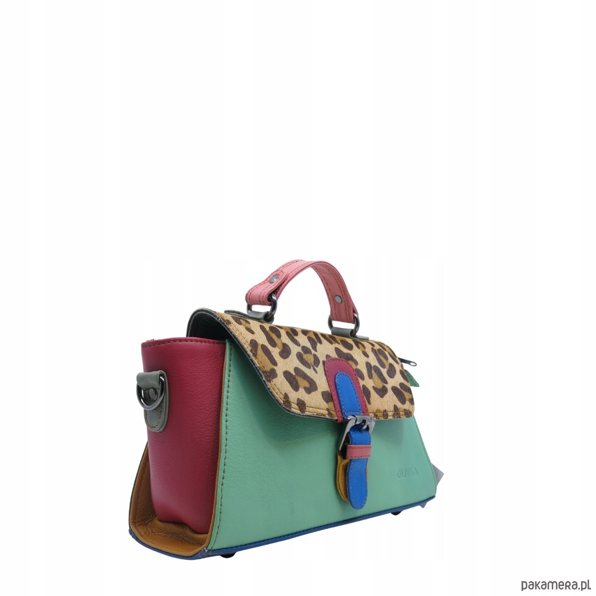 Torebka ze skóry naturalnej retro do ręki regulowany pasek elegancka OLIVKA