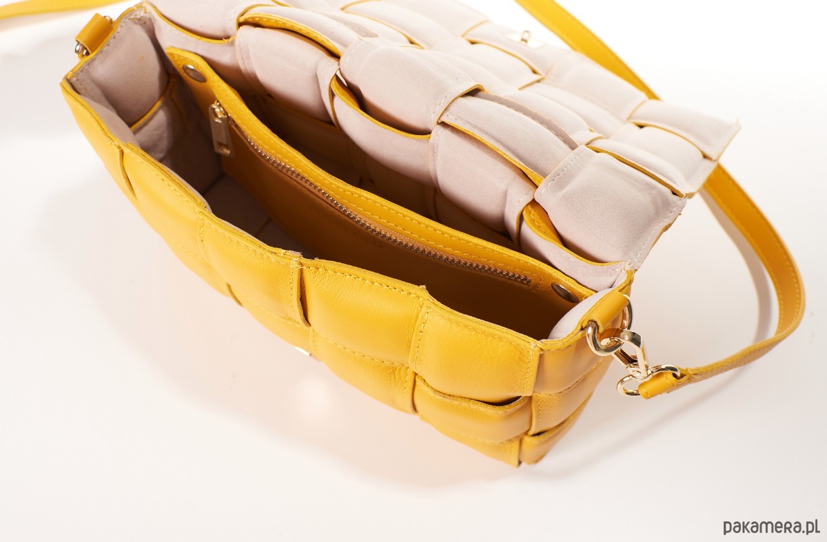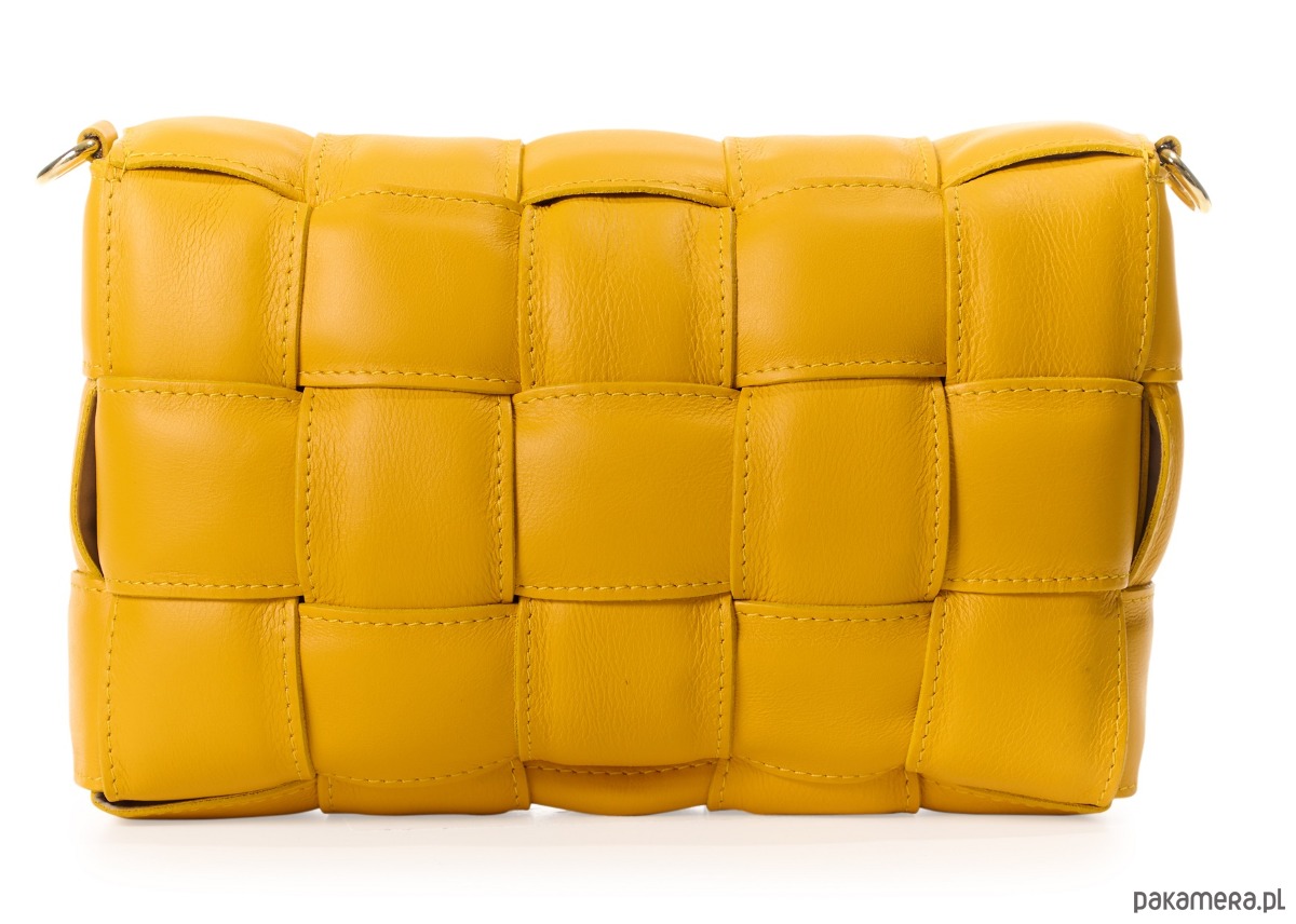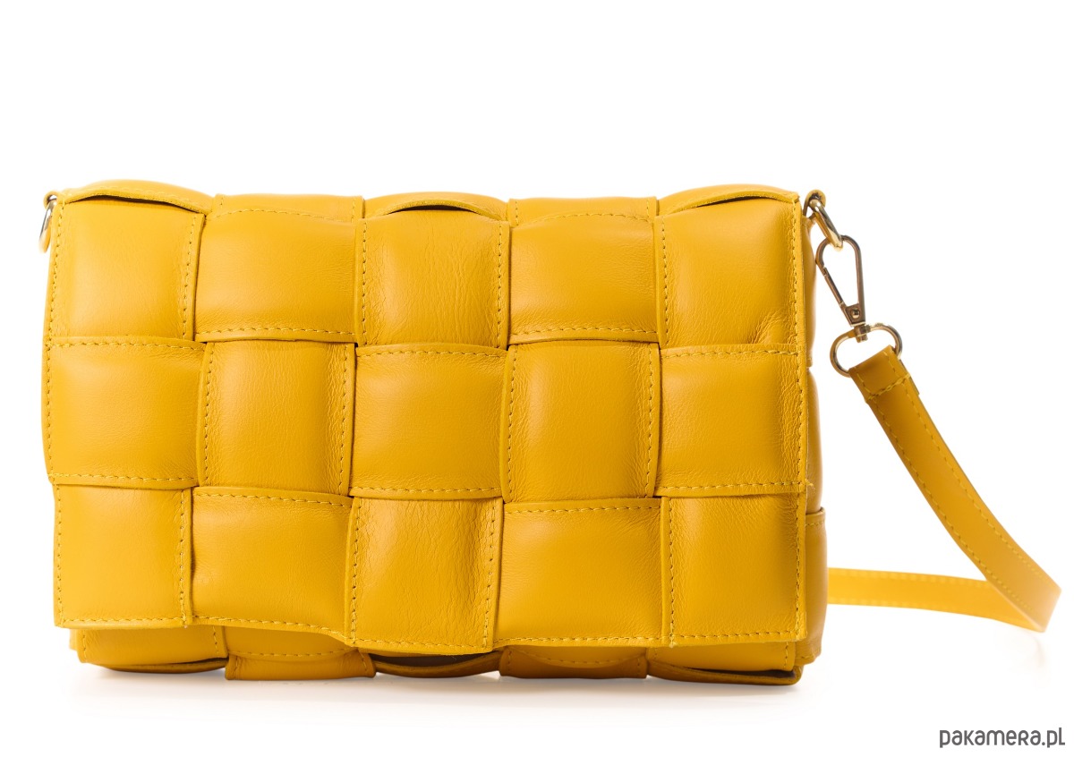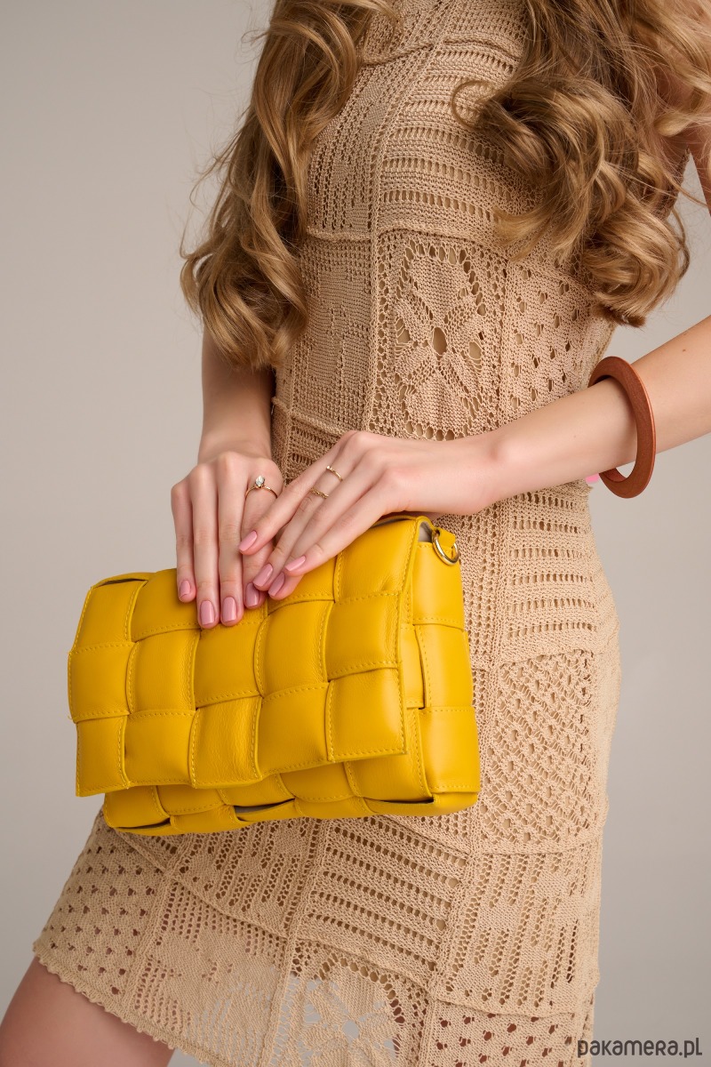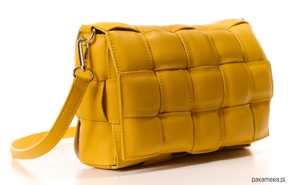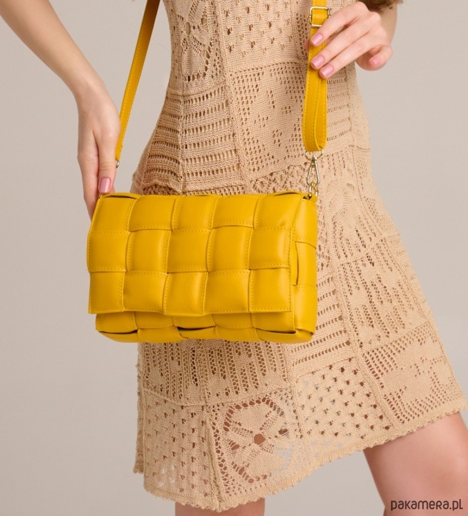 Elegancka torebka ze skóry naturalnej z klapką wzór w przeplatane pasy skórzane.