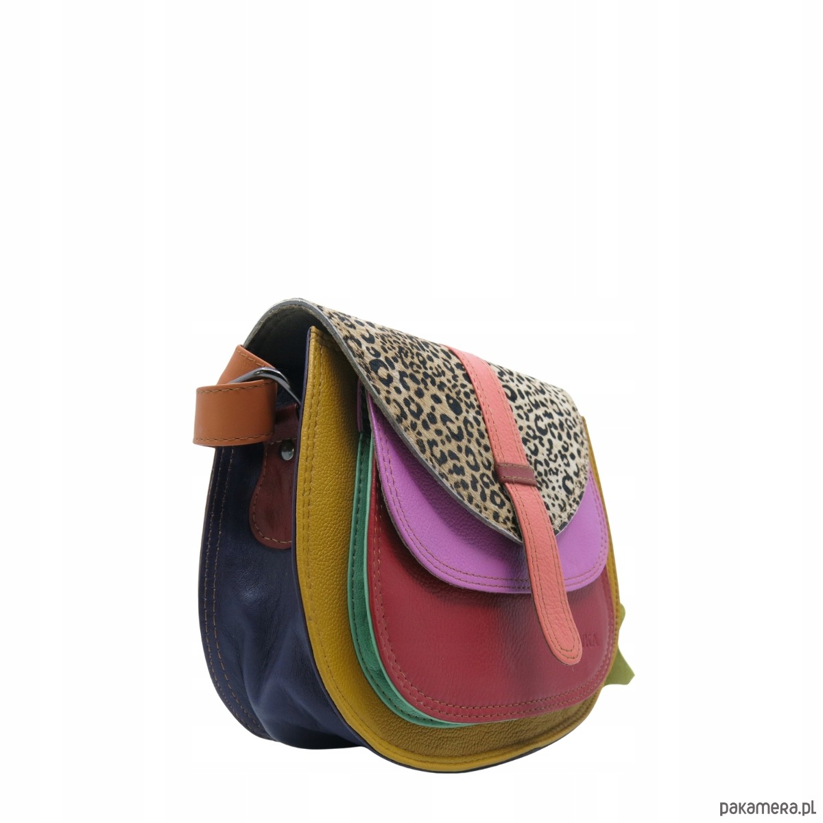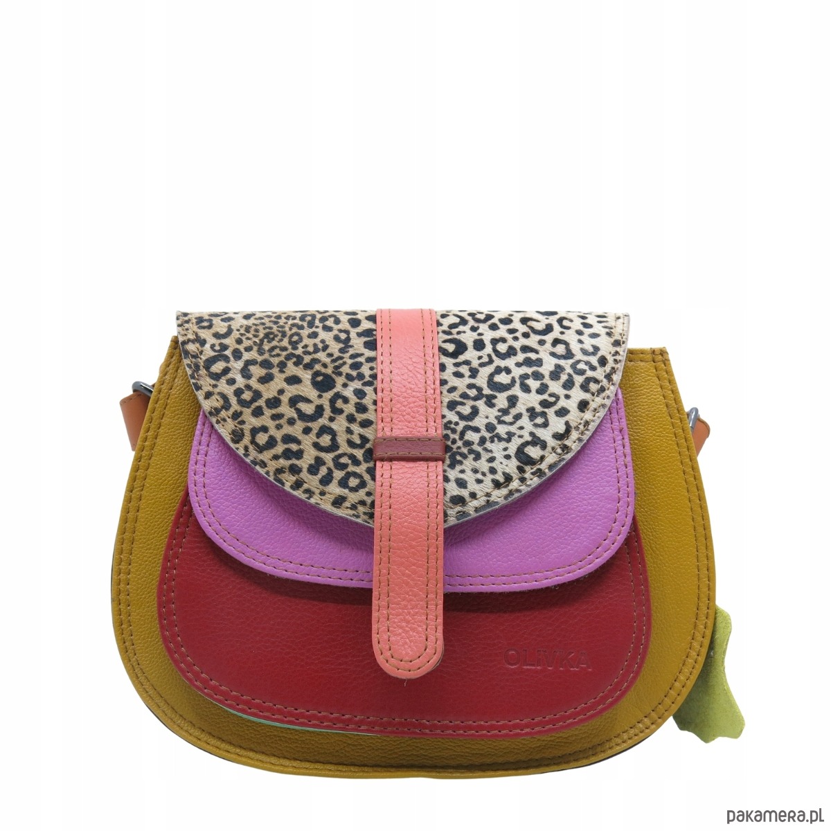 Torebka ze skrawków skóry naturalnej na ramię pojemna kolorowa OLIVKA