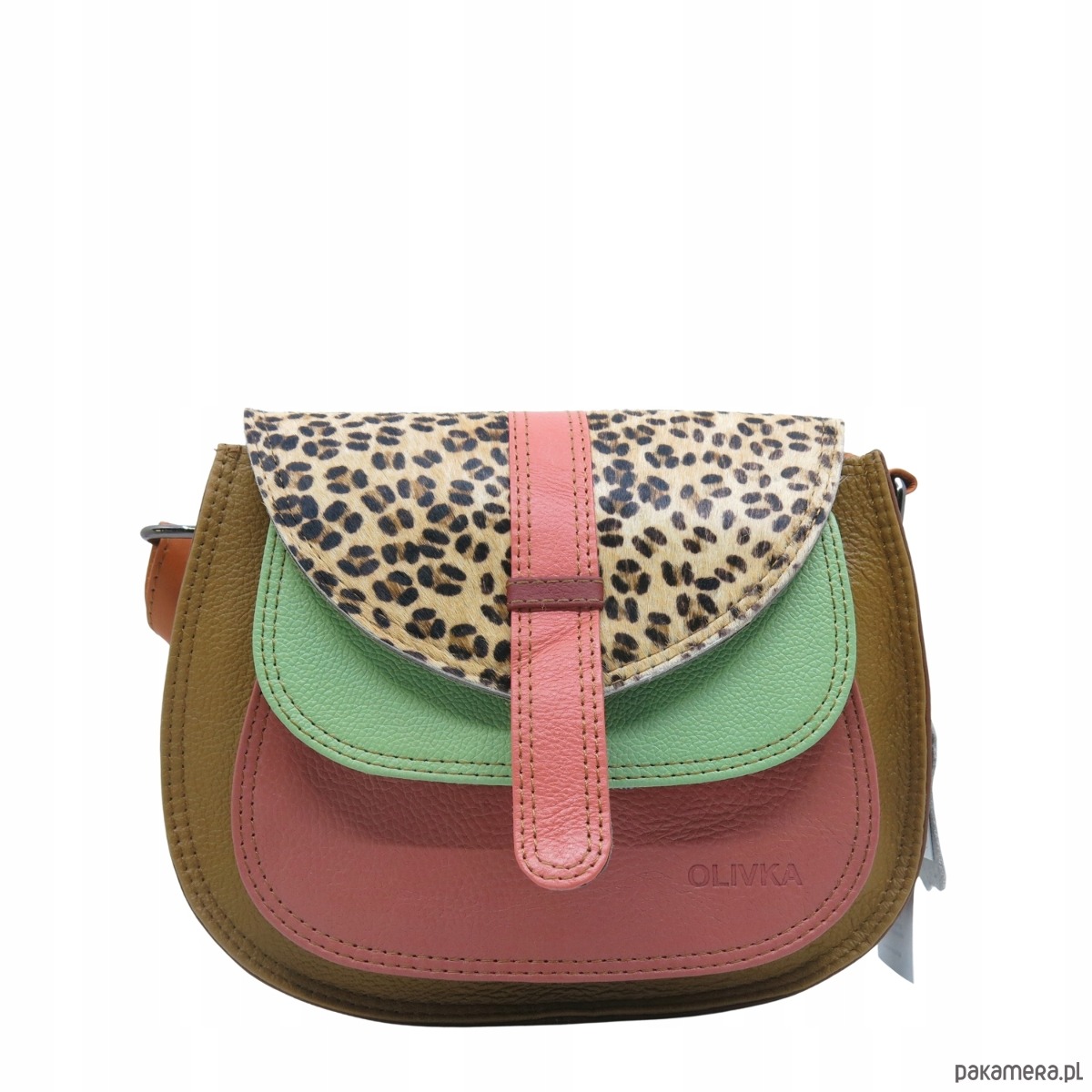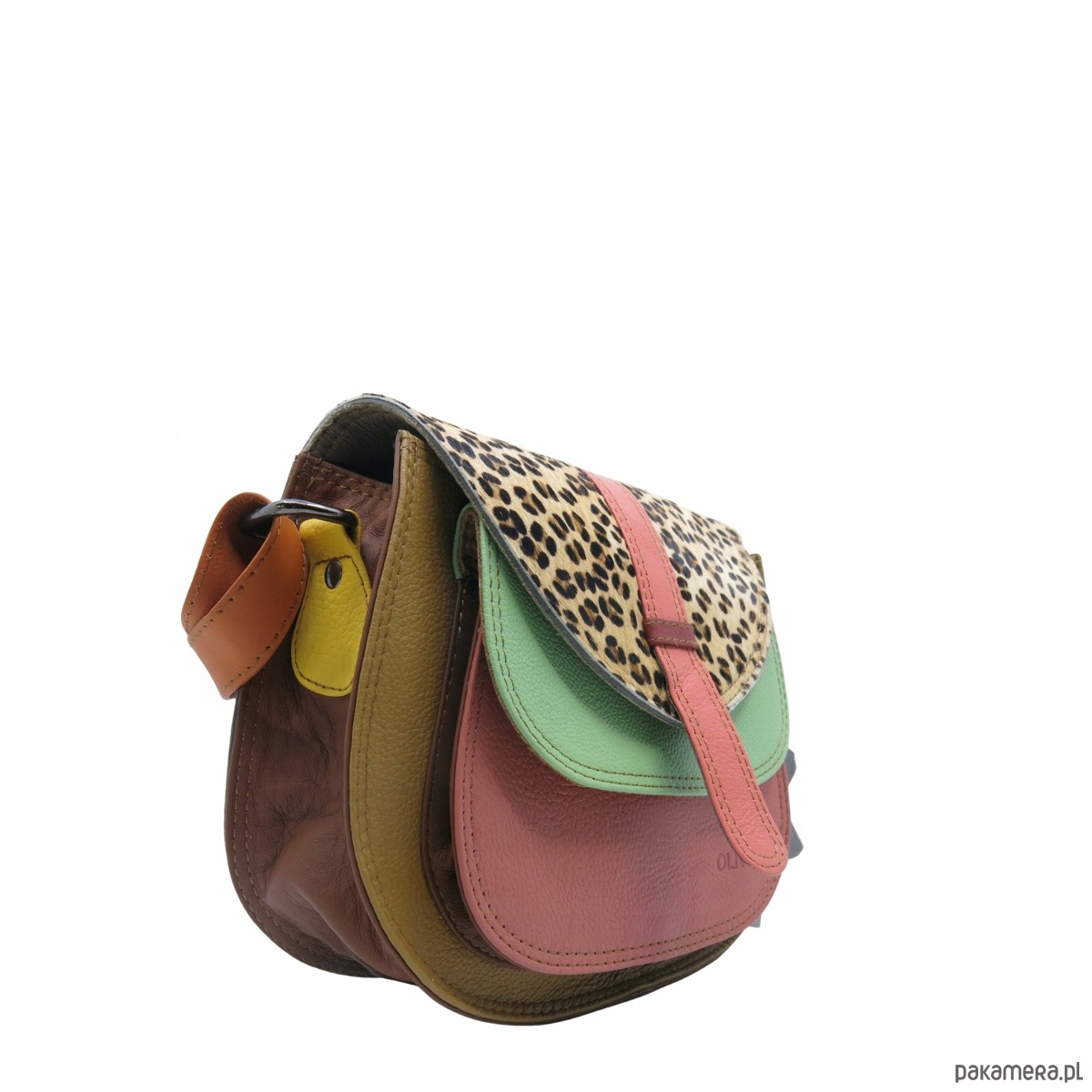 Torebka ze skrawków skóry naturalnej na ramię pojemna kolorowa OLIVKA