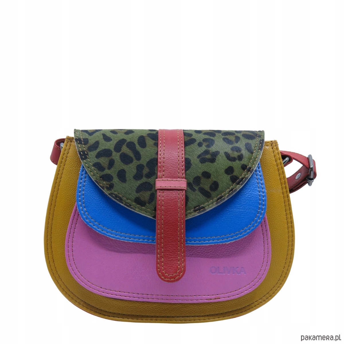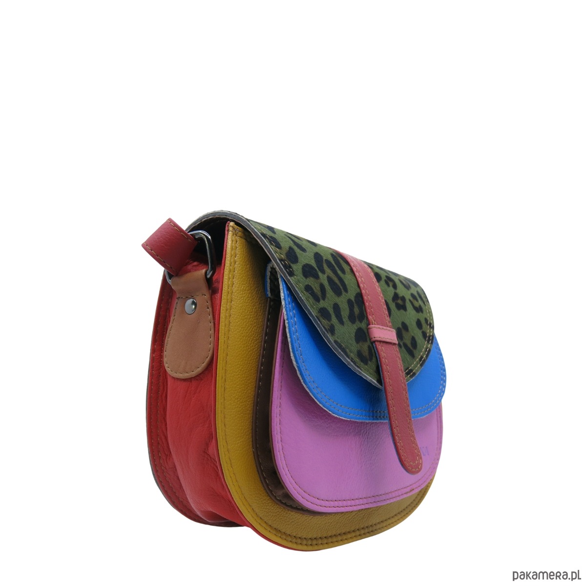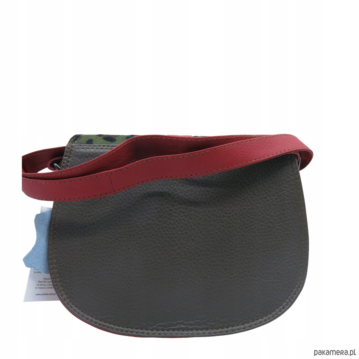 Torebka ze skrawków skóry naturalnej na ramię pojemna kolorowa OLIVKA