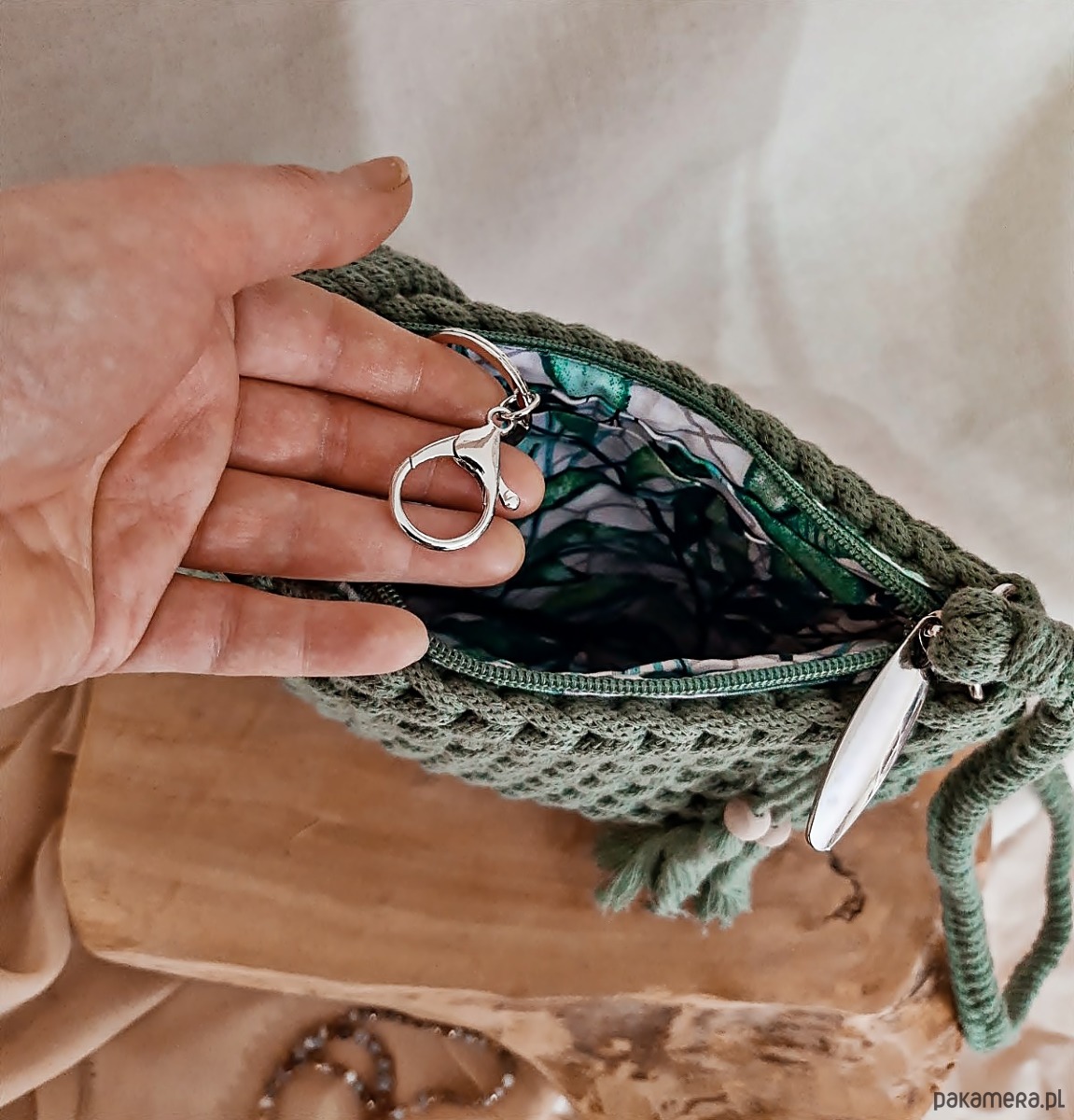 Wewnątrz torebki znajduje się zapinana na zamek błyskawiczny podszewka z kieszonką oraz karabińczykiem na klucze - dzięki temu zawsze będziesz wiedzieć gdzie są i obejdzie się bez zbędnego szukania.