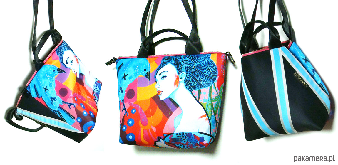 torba z taśmą różową (na zdjęciu z niebieską)!!! torba z printem pracy Marcina Painty, można prać w 30*C, można prasować, wykonana w jednym niepowtarzalnym zestawieniu zamków i taś fluo, dwie możliwości zapinania, zamek / zatrzask, trzy kieszenie wewnątrz, wymiar 46x44 cm,