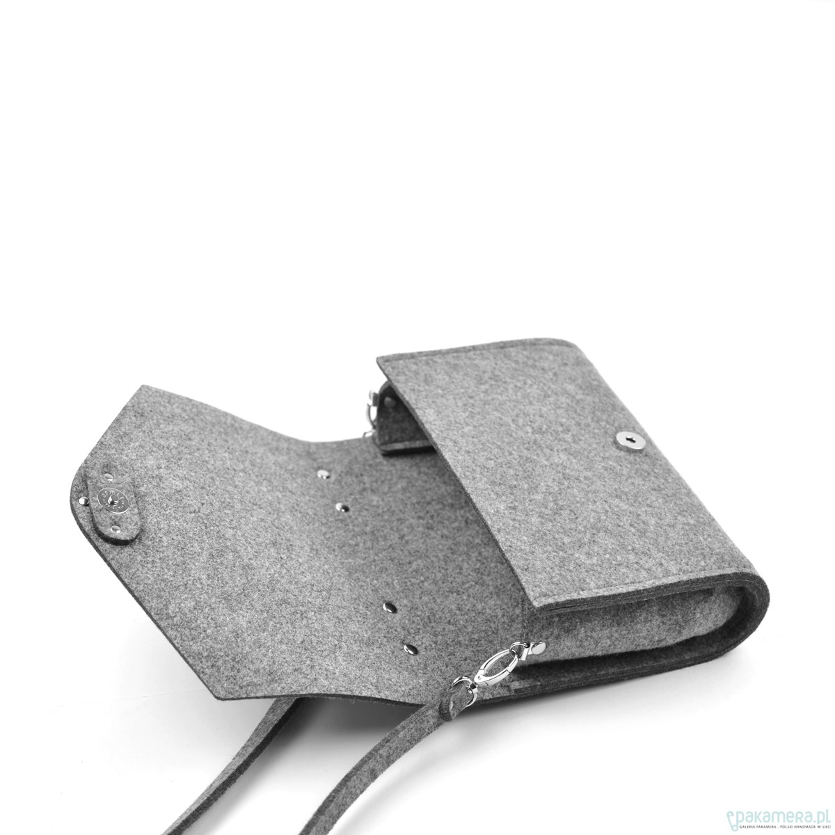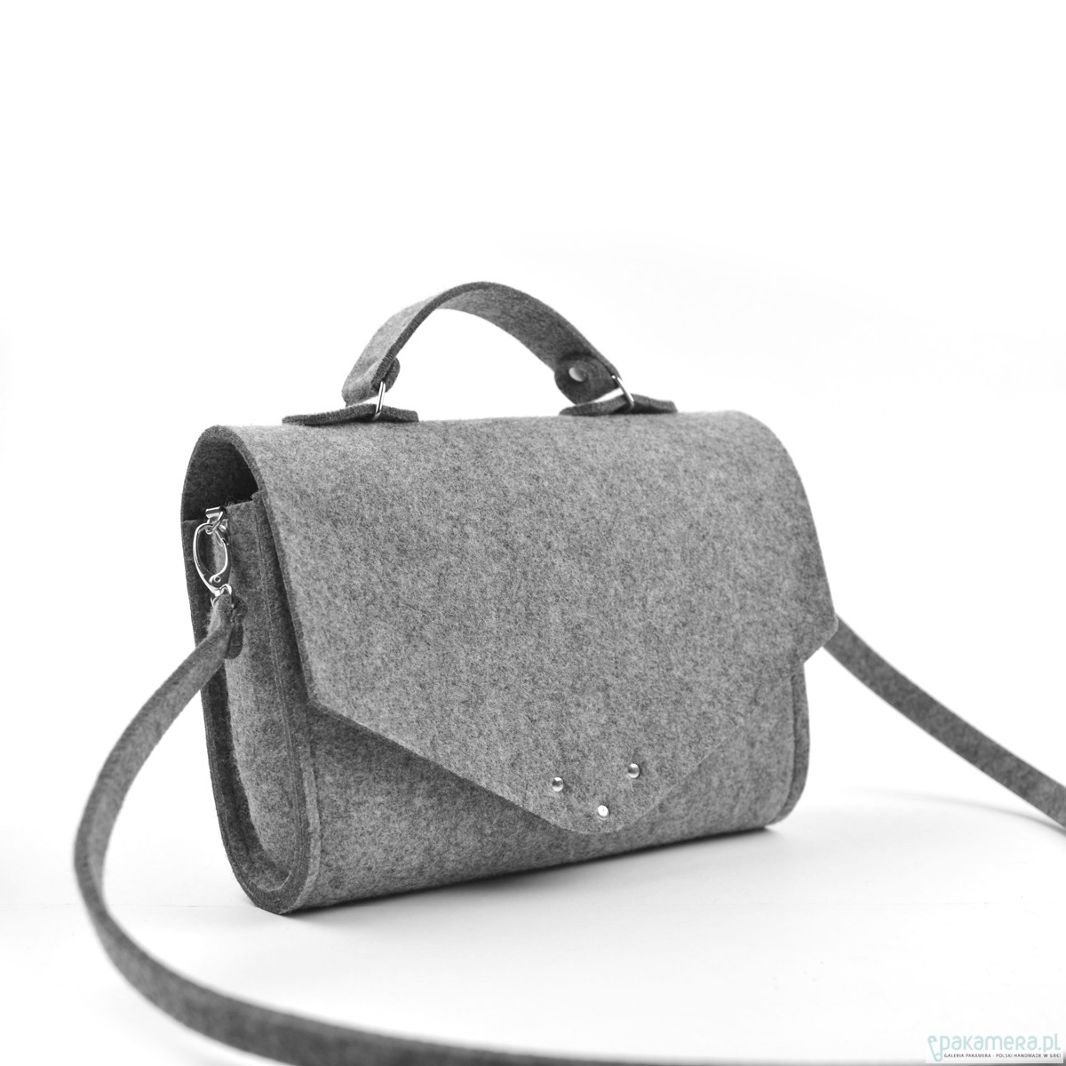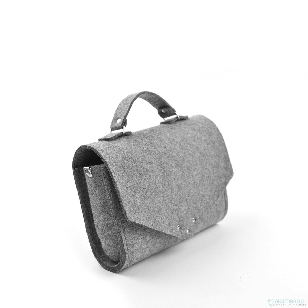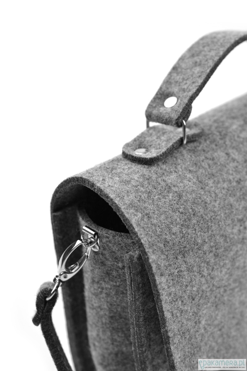 Fantastyczna filcowa torebka. Wygodna w noszeniu zarówno przez ramię jak i w dłoni za krótką rączkę. Pojemna mimo swoich małych rozmiarów. Model: SmallSatchel, Kolekcja: filcMe, Kształt: prostokąt, Zapięcie: zatrzask magnetyczny, Kolor: szary, Wymiary: 25 cm x 18 cm, szerokość boku i podstawy 7 cm, Materiał: filc 4 mm, Uchwyt: dopinany pasek na ramię dł. 120 cm i rączka. Jeśli interesuje Cię inna wielkość, kolor, dodatkowe elementy niż dostępne w naszej ofercie, szukasz czegoś wyjątkowego – wystarczy, że skontaktujesz się z nami mailowo lub telefonicznie.