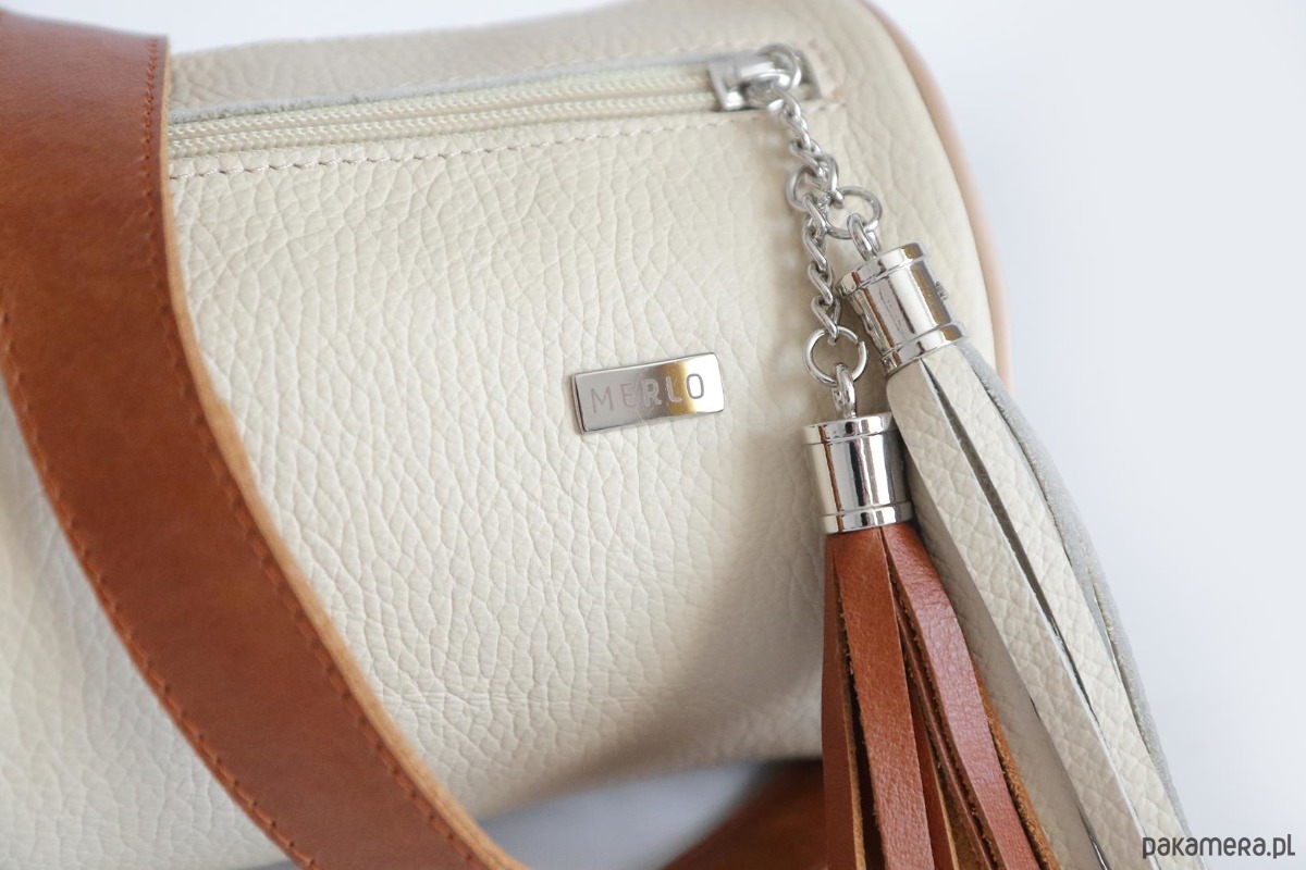 Posiada ozdobne frędzle w kolorze torebki. Pasek szerokość 4 cm bez regulacji.