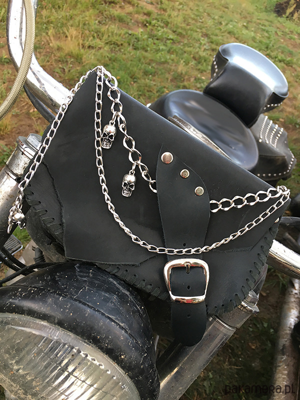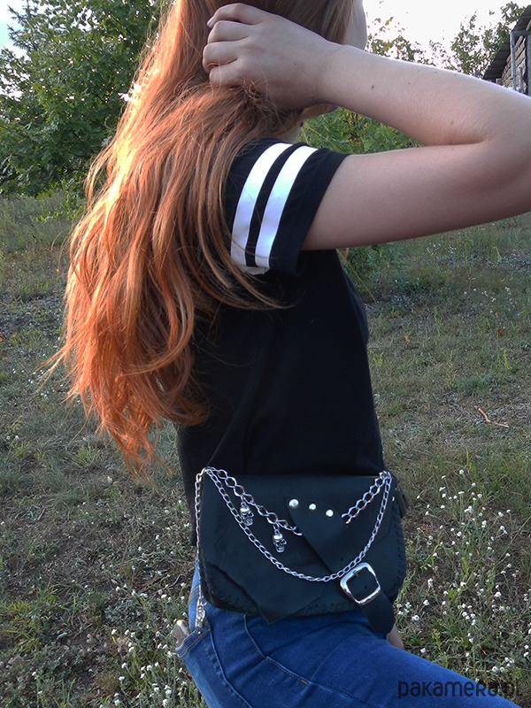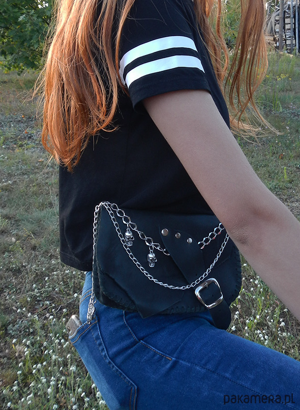 Ozdobiona metalowymi łańcuszkami i elementami czaszek.