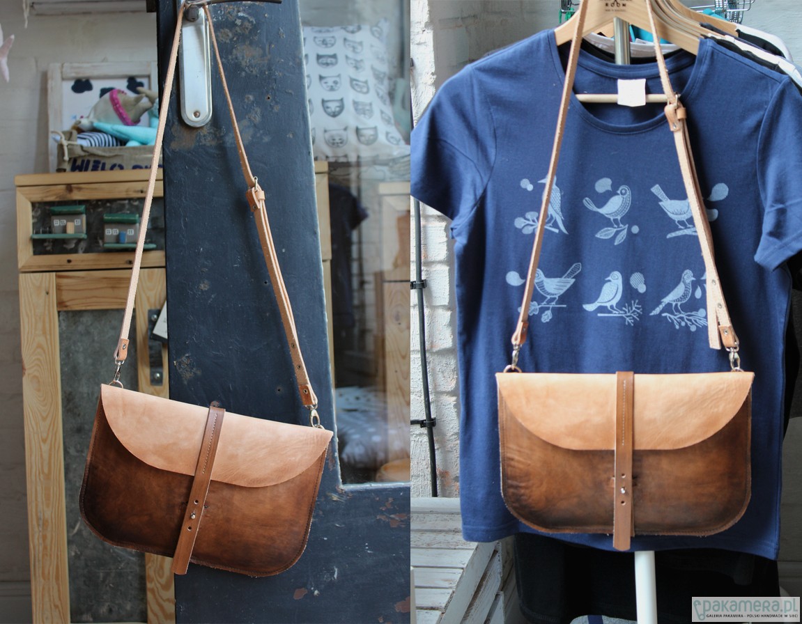 Torebka - kopertówka ze skóry juchtowej