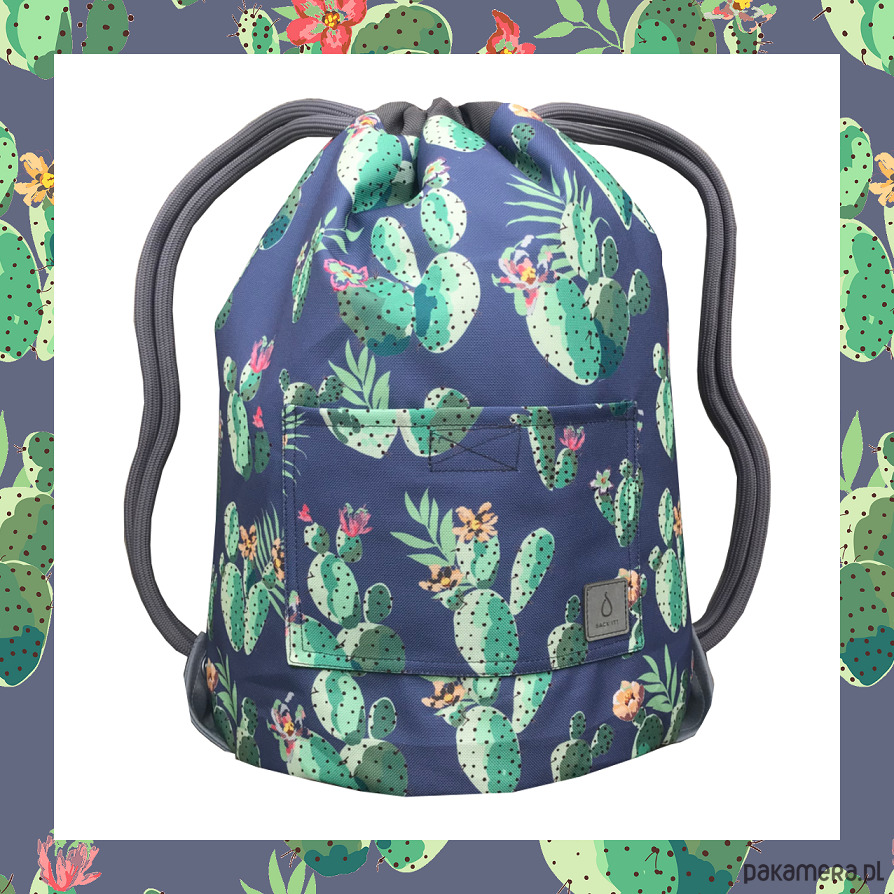 Plecak ma ok. 40 cm wysokości. Do jego uszycia użyliśmy wodoodpornej tkaniny z naszym nadrukiem w kaktusy oraz bardzo wytrzymałej szarej tkaniny. Detale wykonane są z szarej ekoskóry. Gruby, miękki sznurek, którego długość możesz w prosty sposób regulować. Plecak jest wodoodporny ,może towarzyszyć Ci w trakcie spacerów w deszczu.