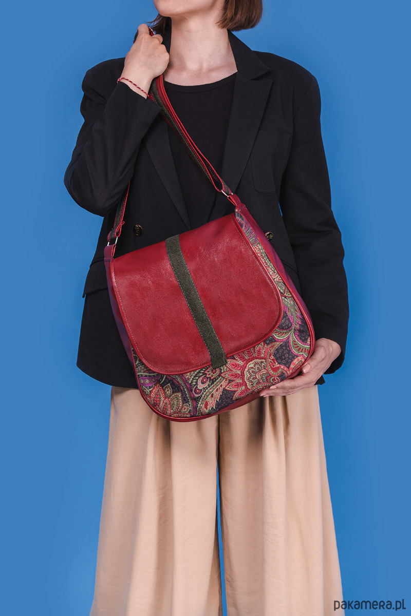SASHKA - średniej wielkości torebka na ramię - listonoszka. Wykonana z ekoskóry i tkaniny w kwiaty. Zamykana na magnes pod klapką. Wewnątrz znajdują się dwie pojemne kieszenie, jedna na ekspress, druga wsuwana. Pasek regulowany. Wygodna, pojemna, na każdą okazję.