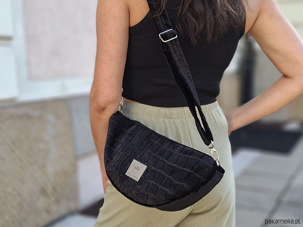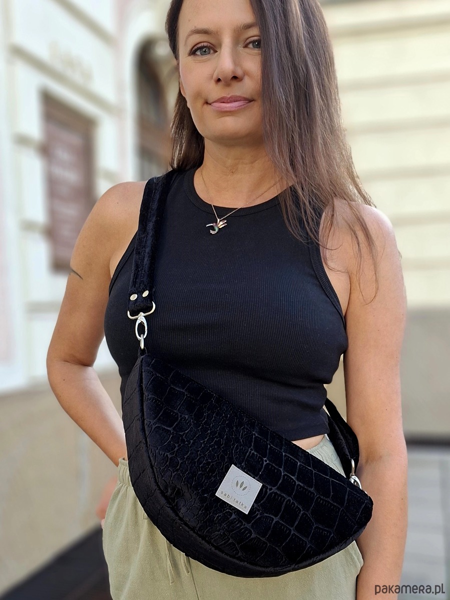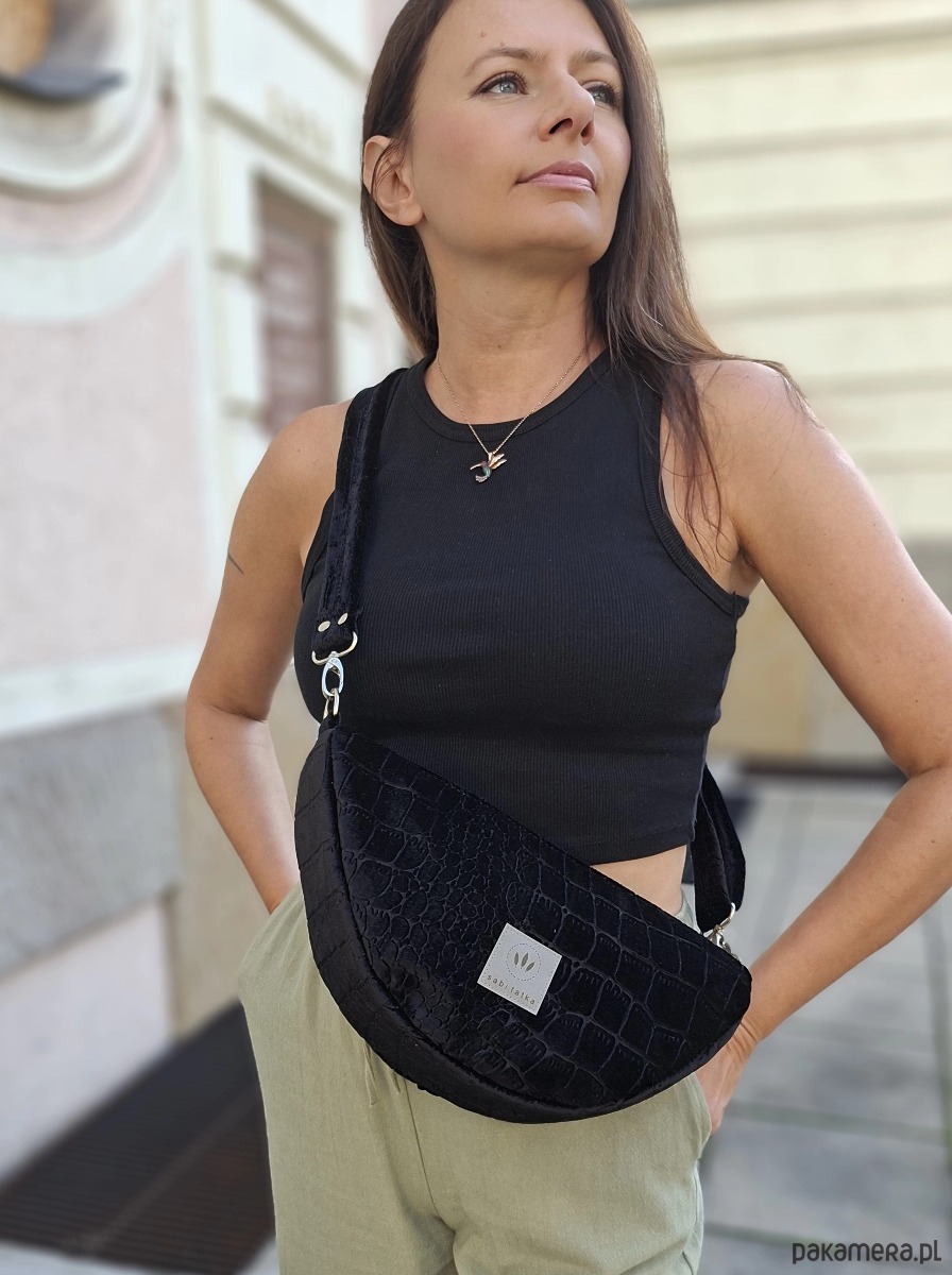 Torebko nerka z czarnego weluru Krokodyl