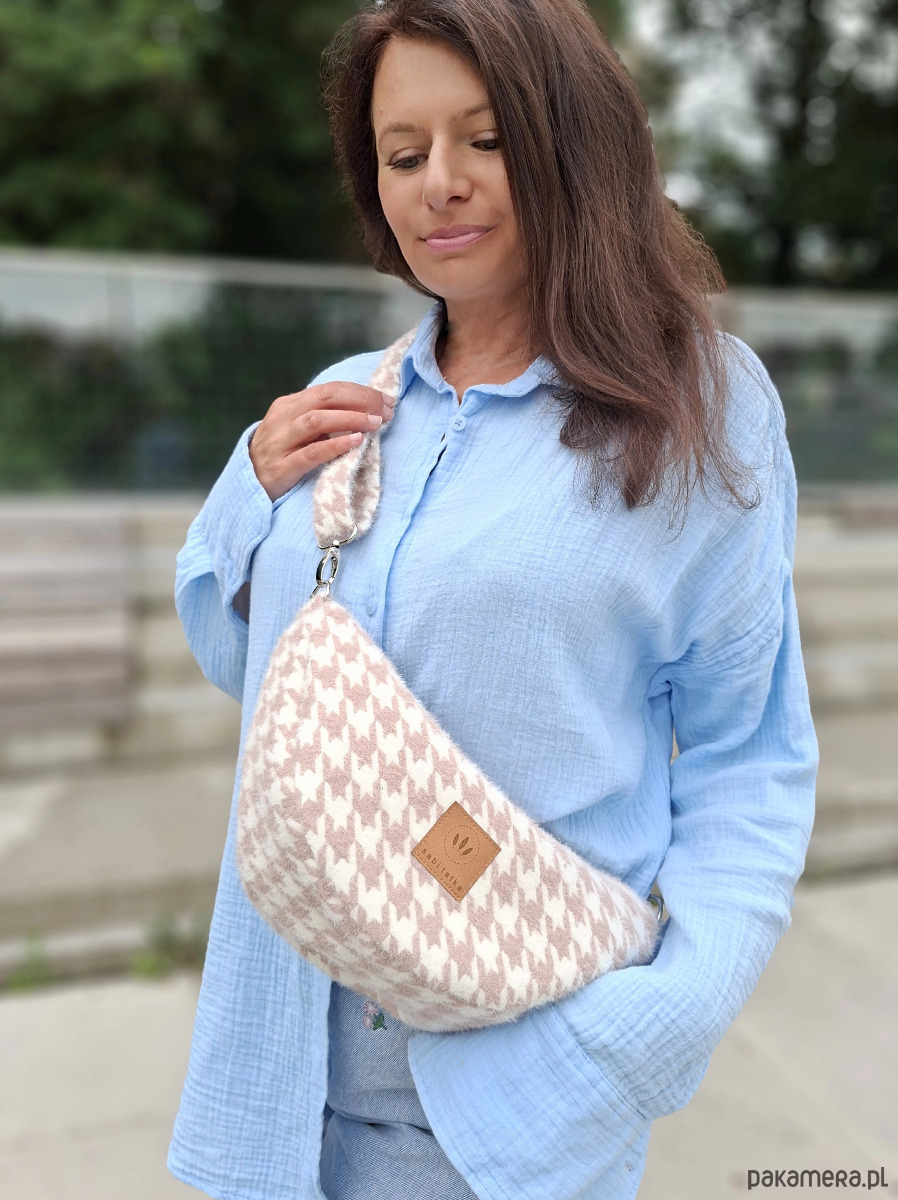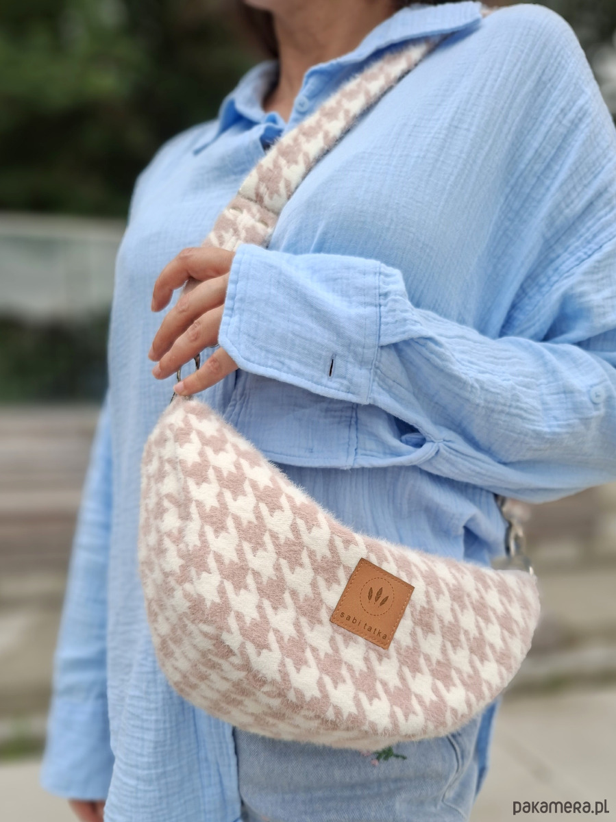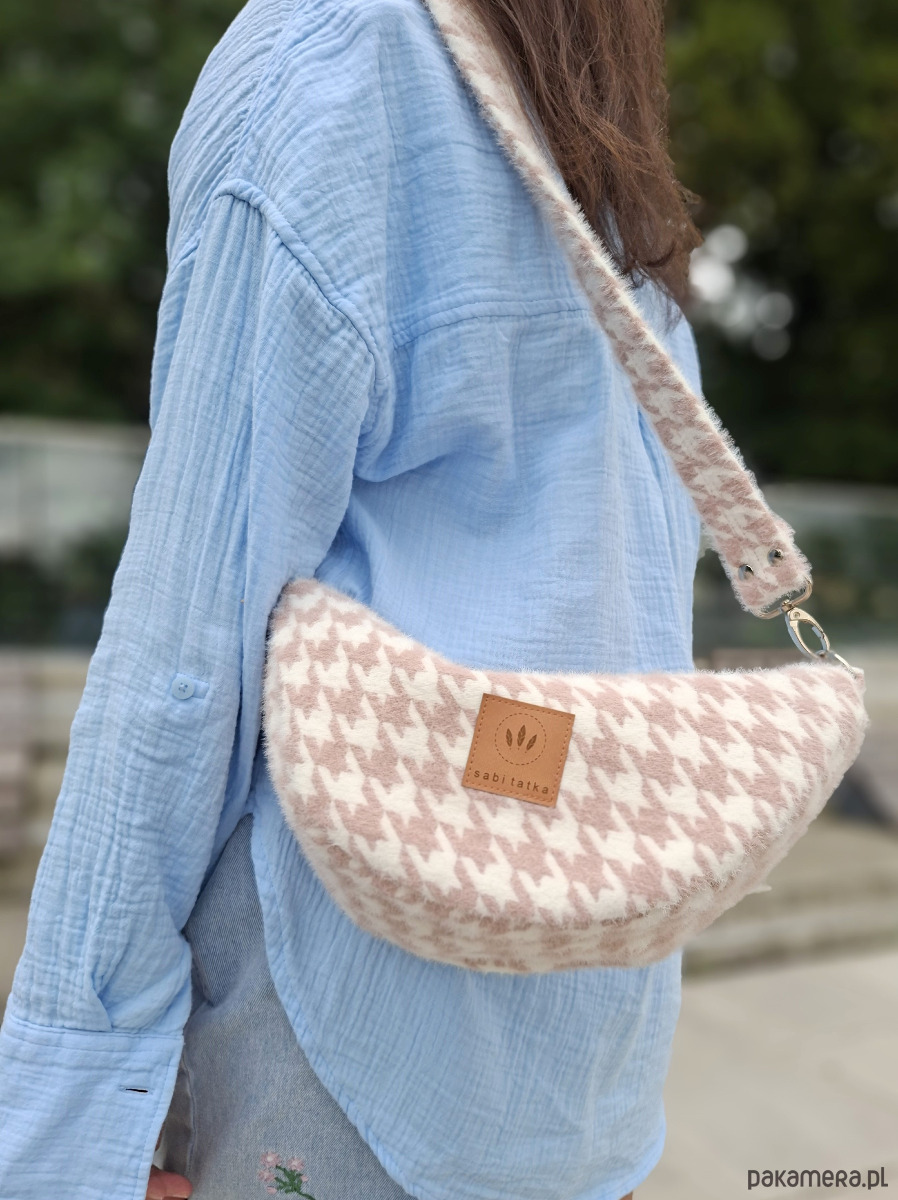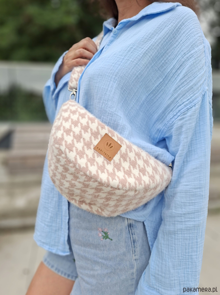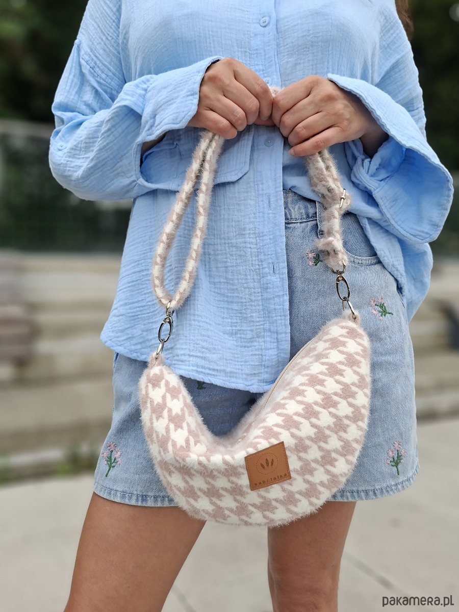 Torebko nerka z puchatej tkaniny Pepitka Różowa