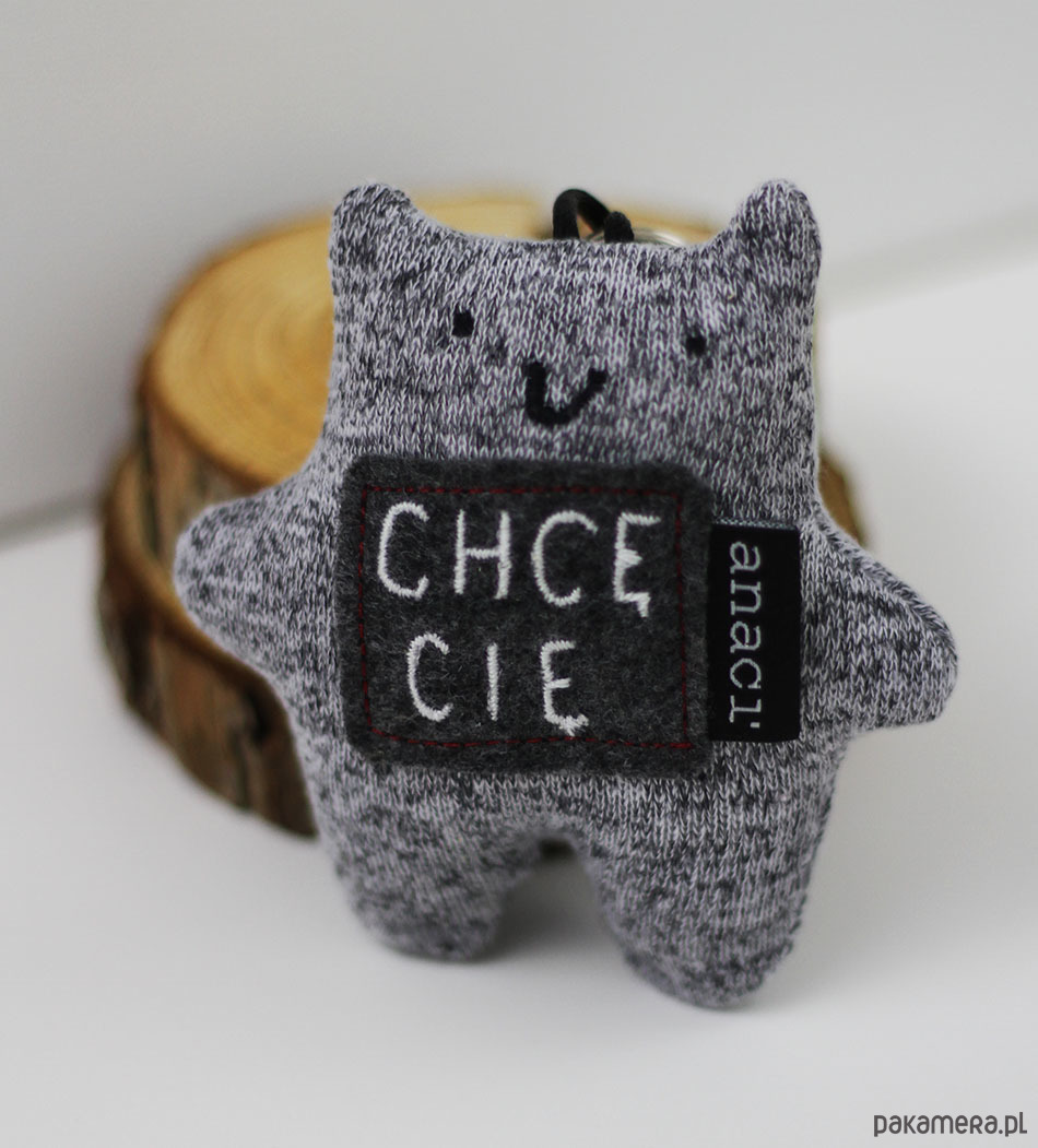 Mierzy sobie 10 cm., zaopatrzony w filcową plakietkę z wyhaftowaną dedykacją.