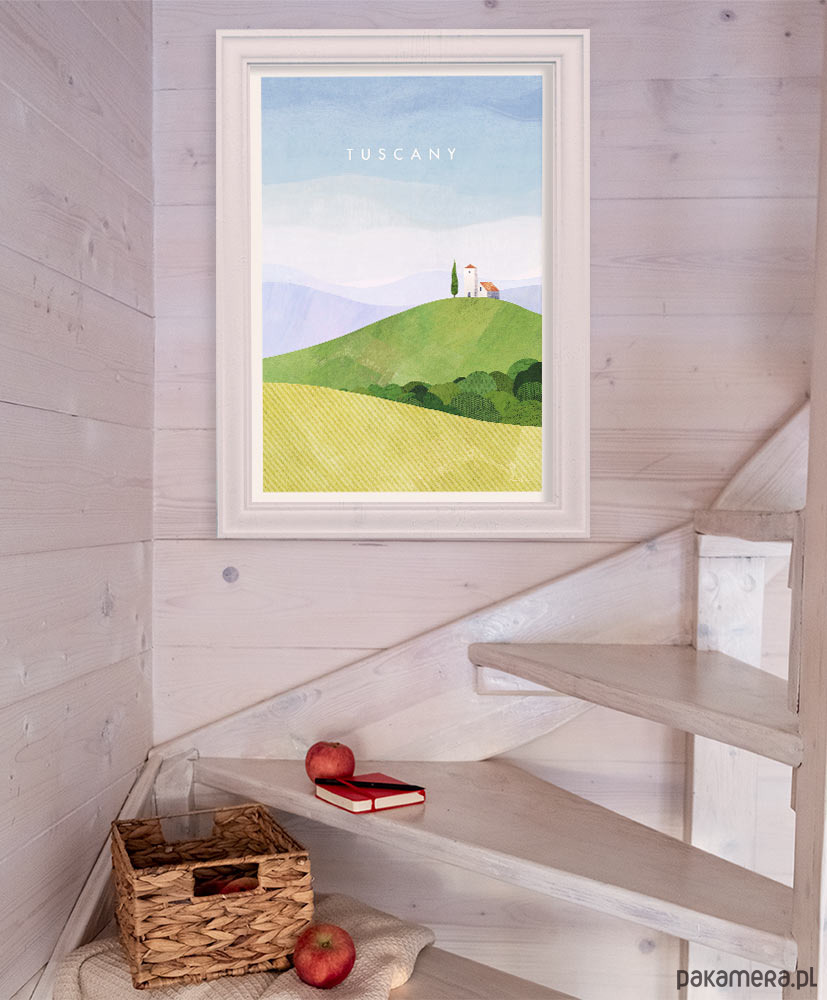 Podróżniczy plakat Toskania z zielonymi, charakterystycznymi dla tego regionu wzgórzami, wypełnia wakacyjna, radosna energia. Autorem plakatu jest brytyjski ilustrator Henry Rivers. Sprawdź inne plakaty z tej serii i stwórz swoją wyjątkową galerię.