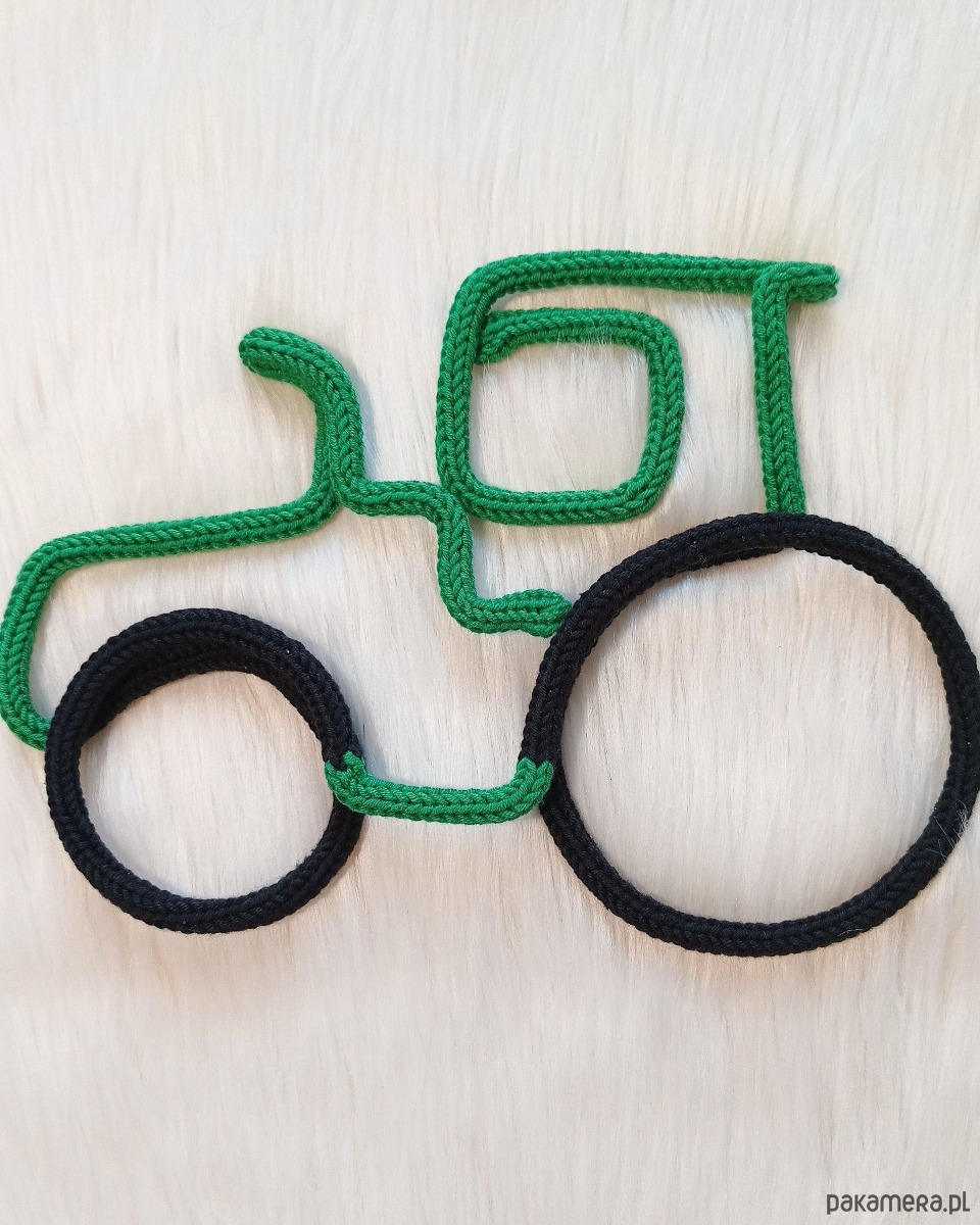 Traktor - ozdoba z włóczki do pokoju dziecka
