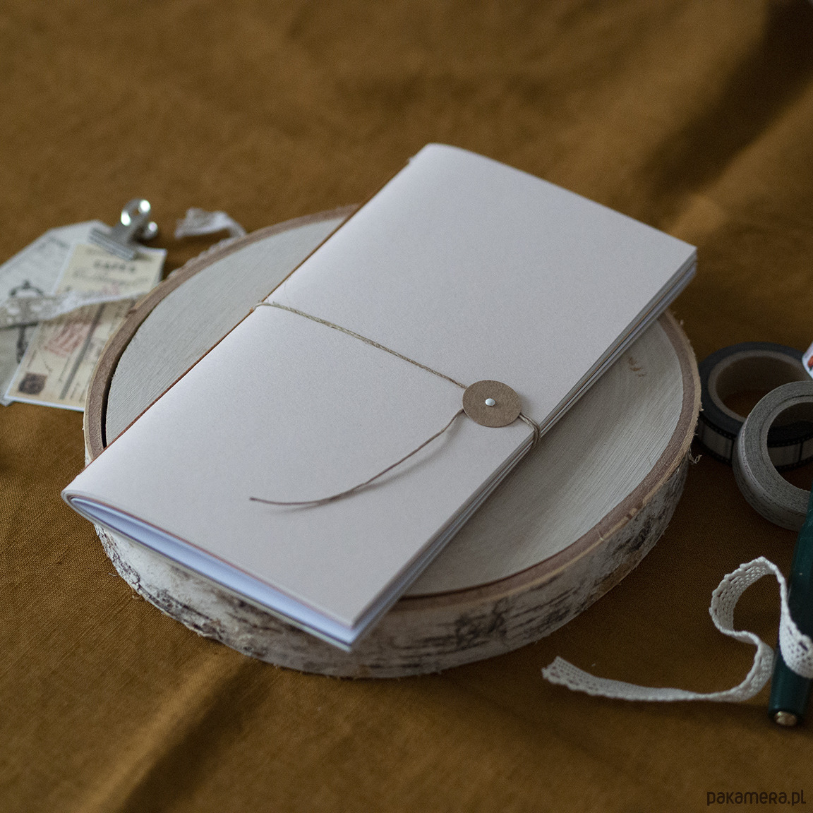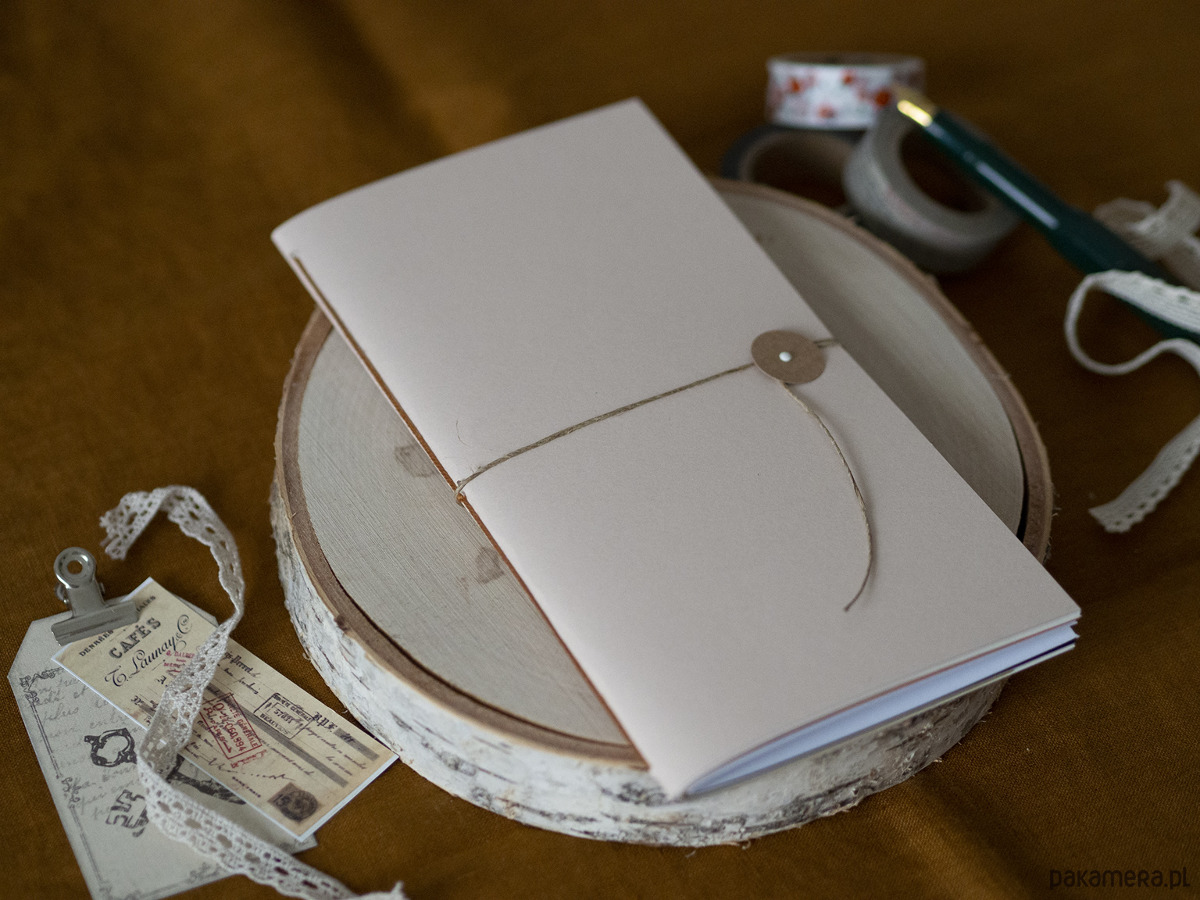 Notes zamykany jest ćwiekiem i przewiązywany lnianym sznurkiem.
