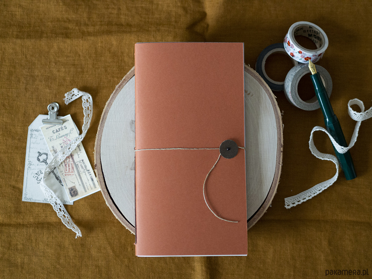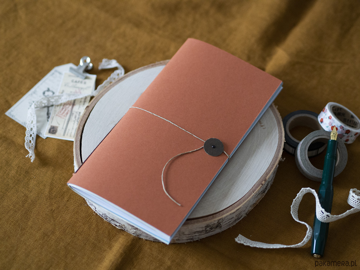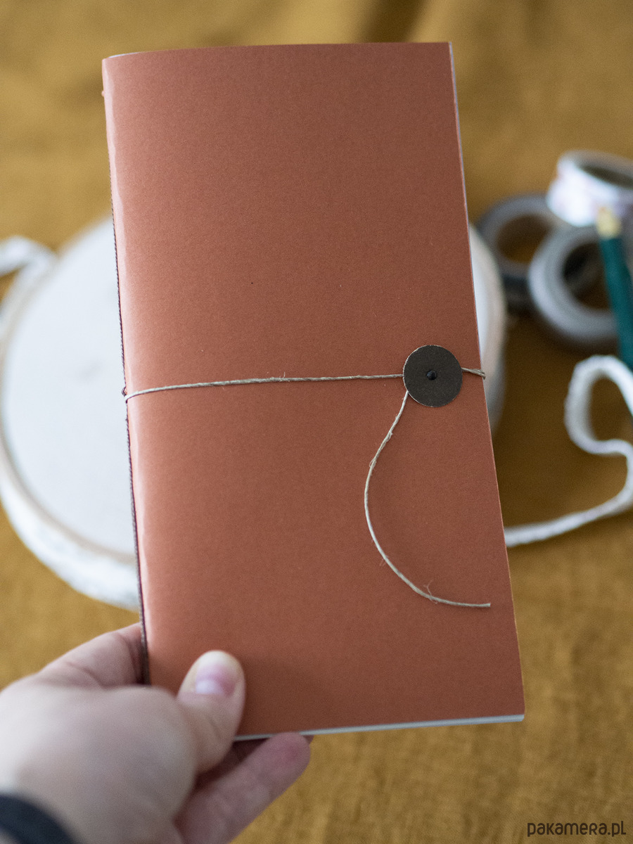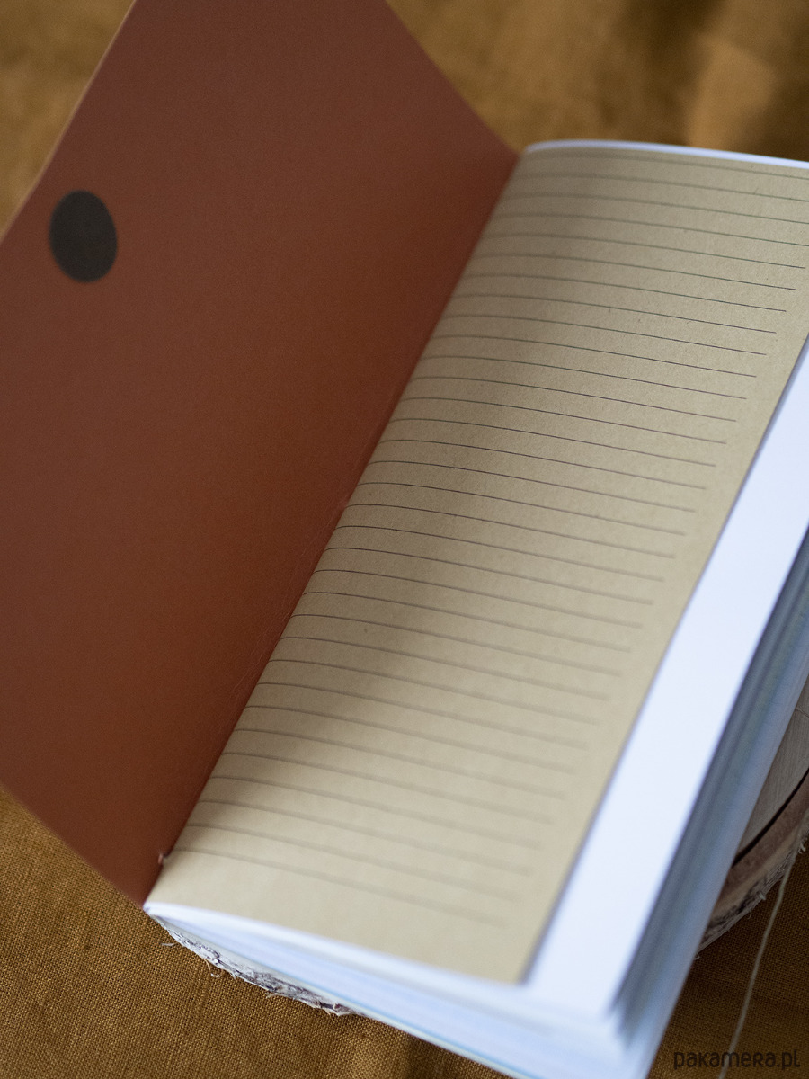 Notes zamykany jest ćwiekiem i przewiązywany lnianym sznurkiem.