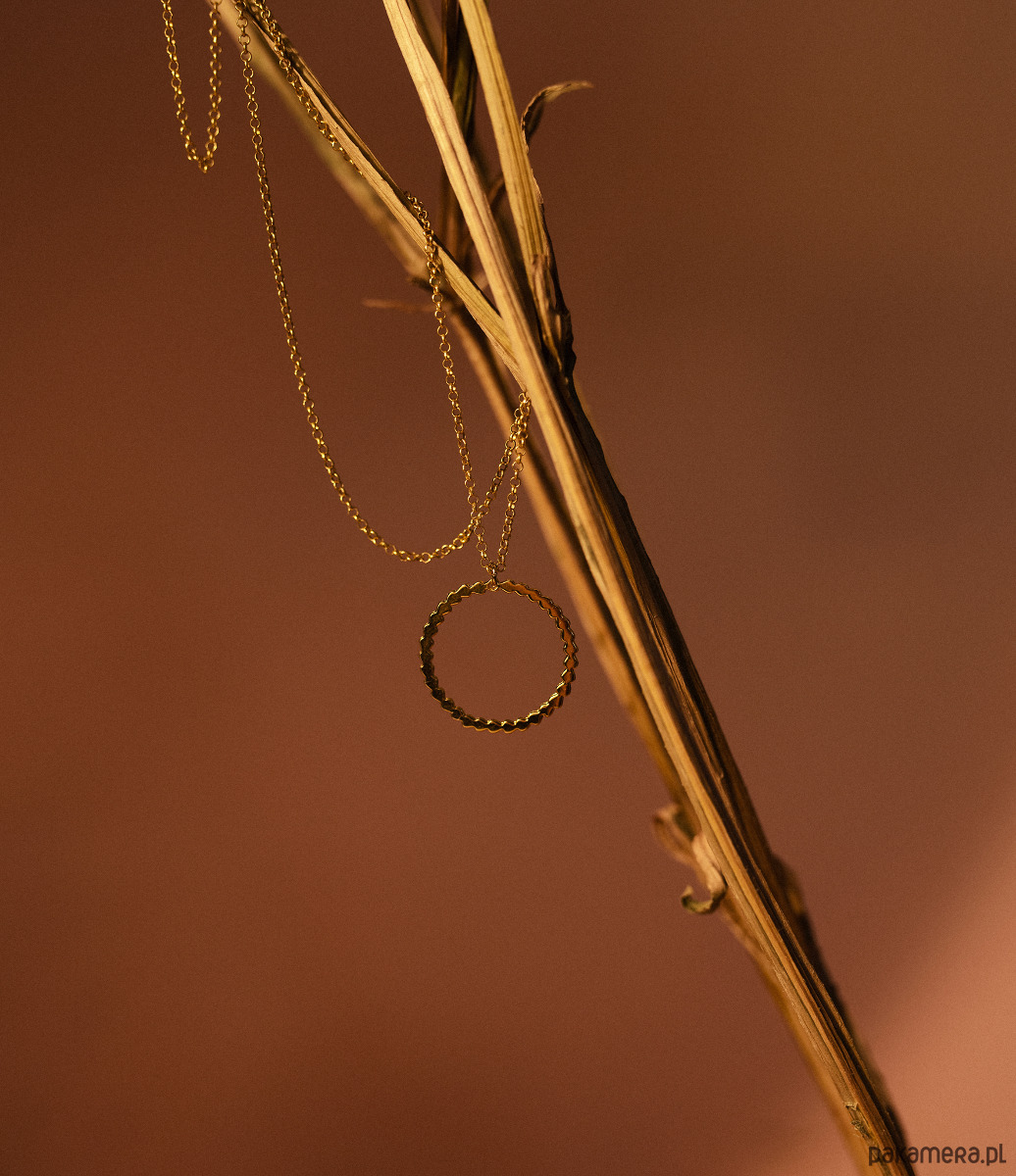 Naszyjnik w całości wykonano ze srebra próby 925 złoconego 24k złotem.