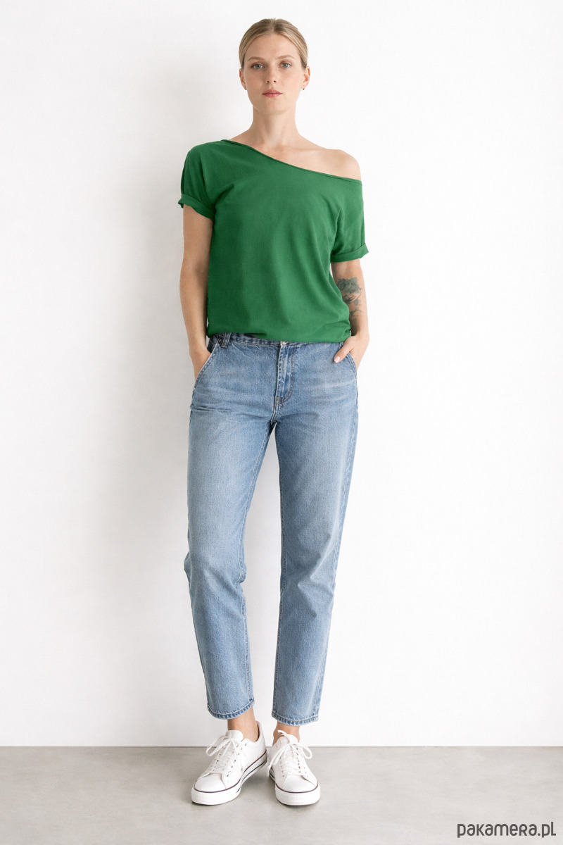 Soczysta zieleń świeżo skoszonej trawy – właśnie taki ma odcień ta koszulka.