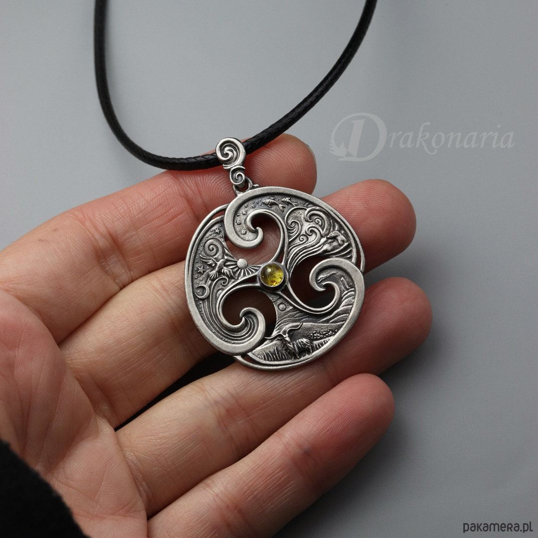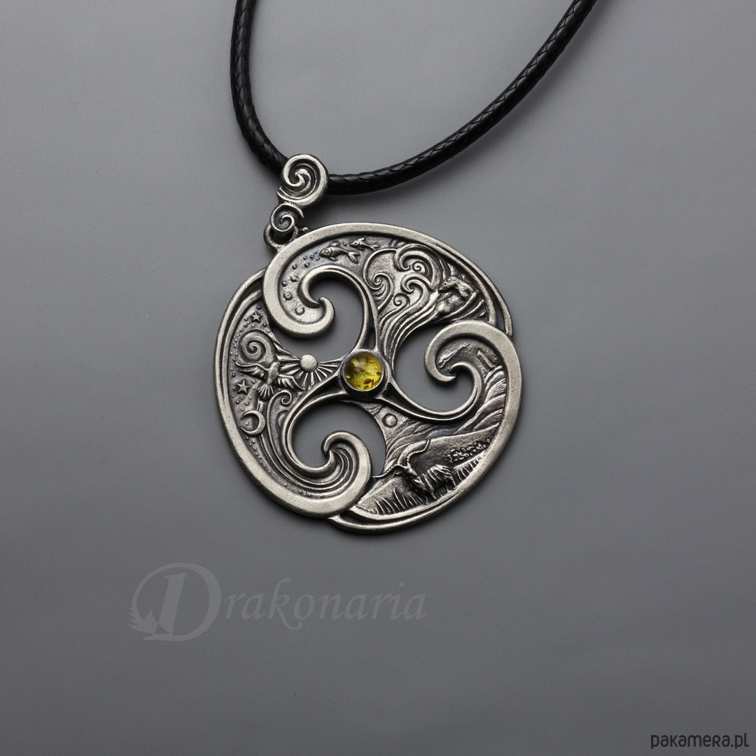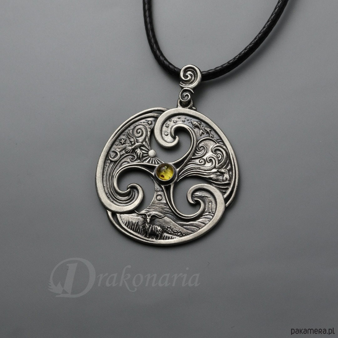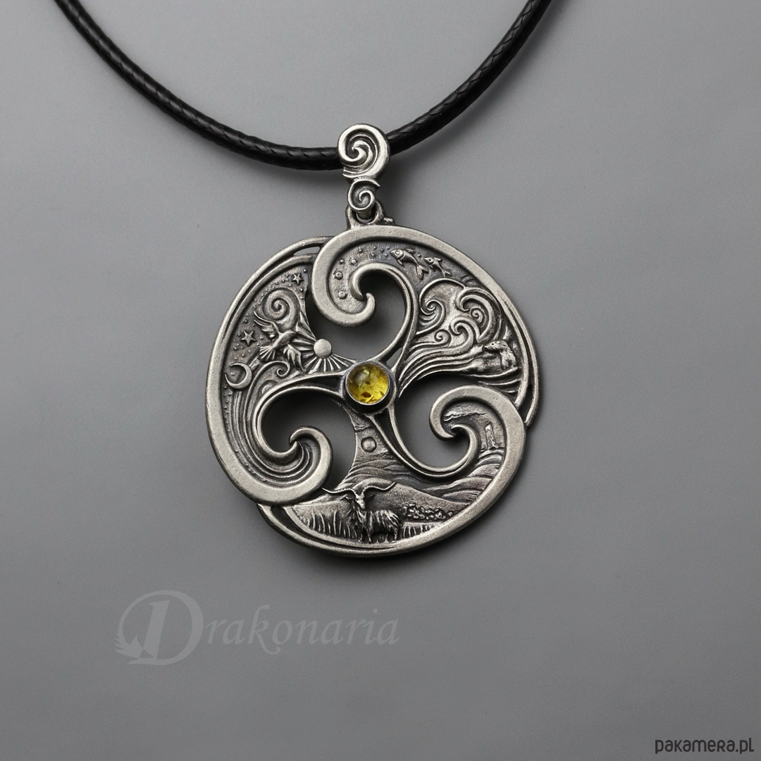 Triskel Trzy Krainy z bursztynem