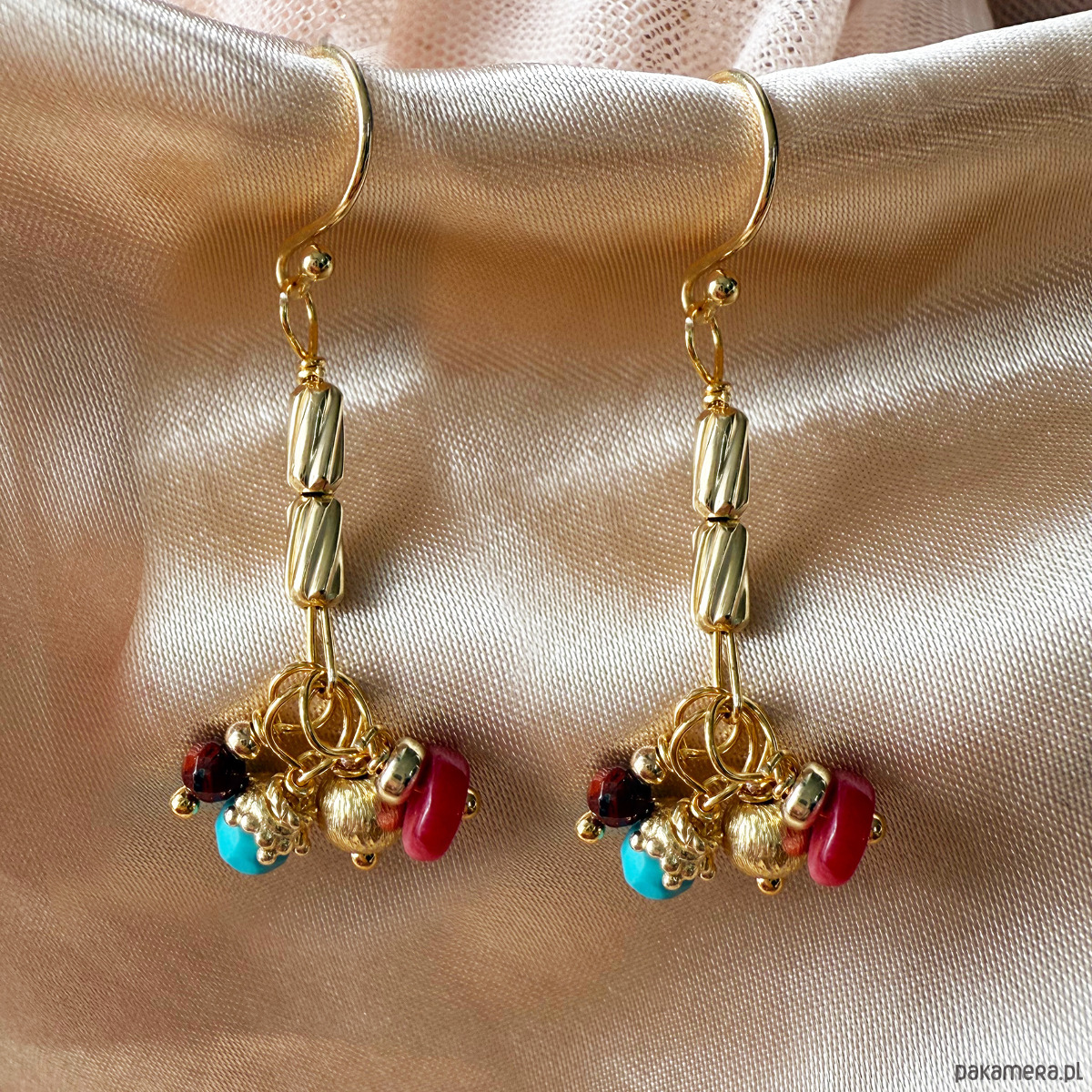 TRISKELIA KOLCZYKI, turkus, koral, kamienie naturalne