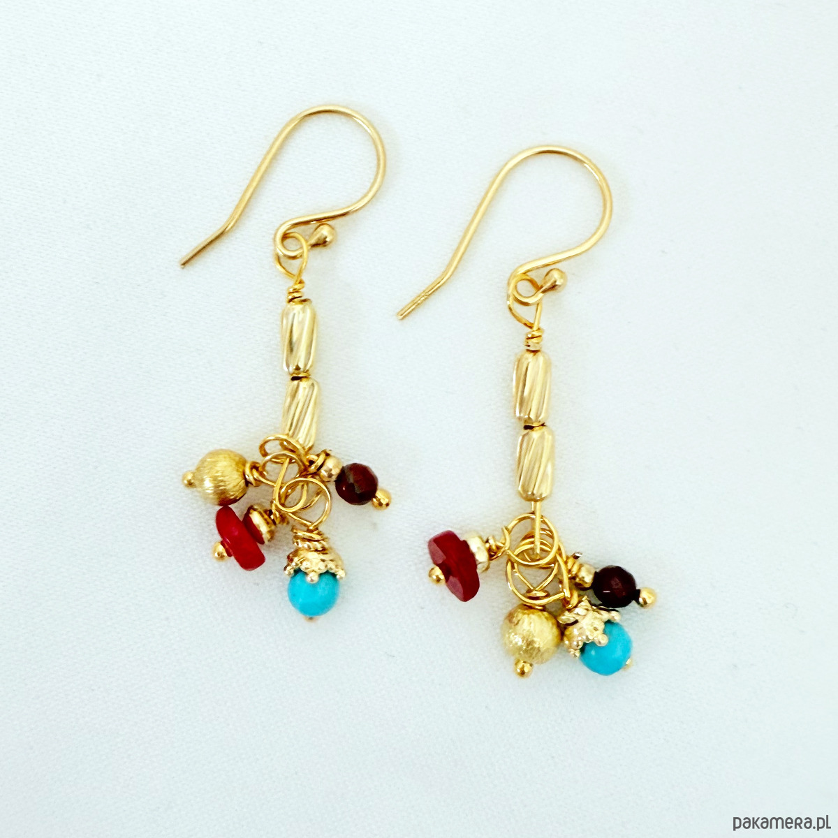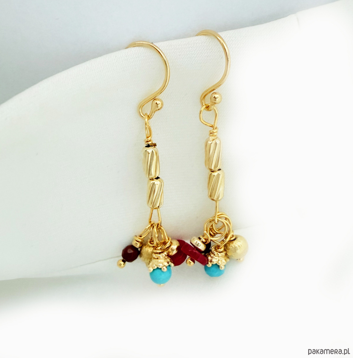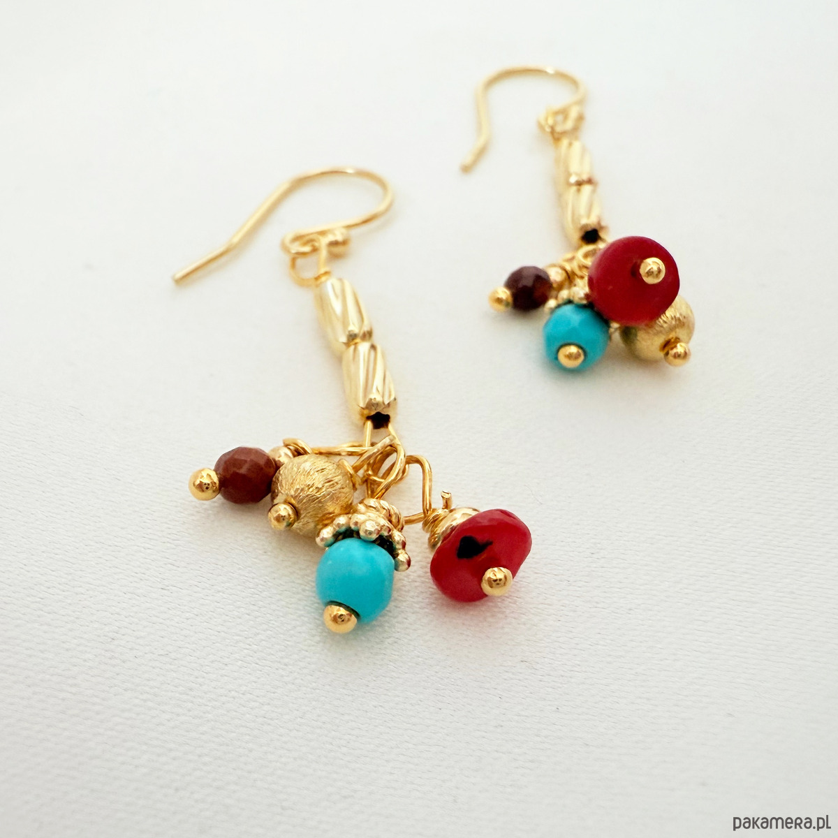 TRISKELIA KOLCZYKI, turkus, koral, kamienie naturalne