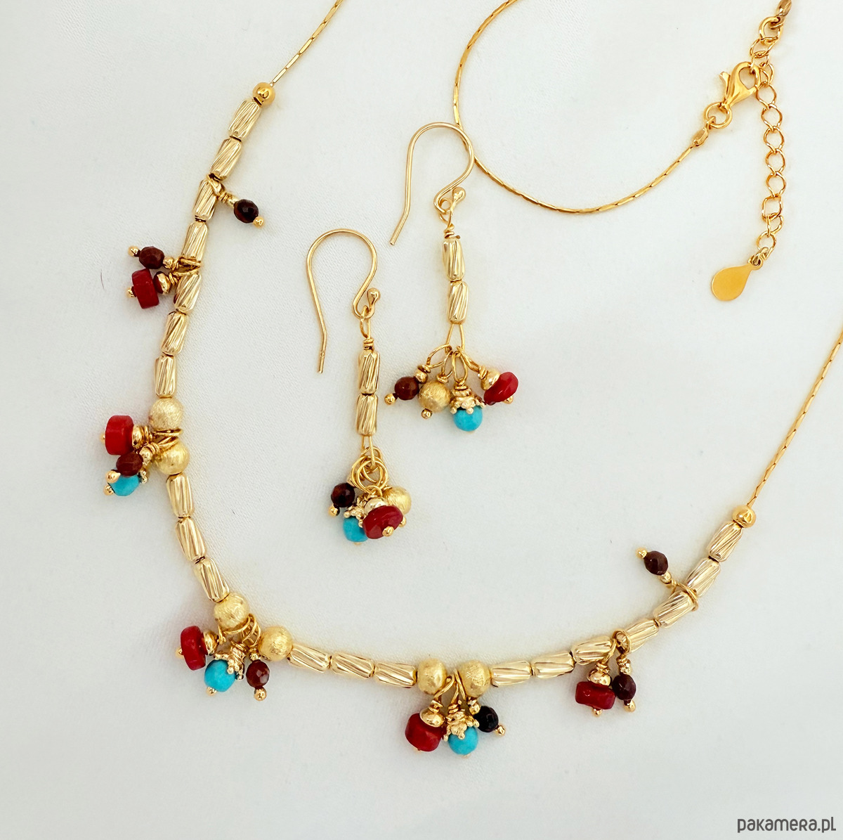 KOLCZYKI TRISKELIA - NALEŻACE DO magicznej biżuterii z potrójnymi kamieniami: koralem, turkusem i tygrysie okiem. Inspirowane celtycką sztuką i symboliką – równowagi, ciągłości i duchowej jedności. Wzbogacone o elementy srebrne pokryte szlachetnym złotem, kamienie tworzą potrójne zestawy, symbolizujące ciało, umysł i duszę – a także przeszłość, teraźniejszość i przyszłość, tworząc harmonijny, balansujący układ. Subtelne, a zarazem wyraziste.