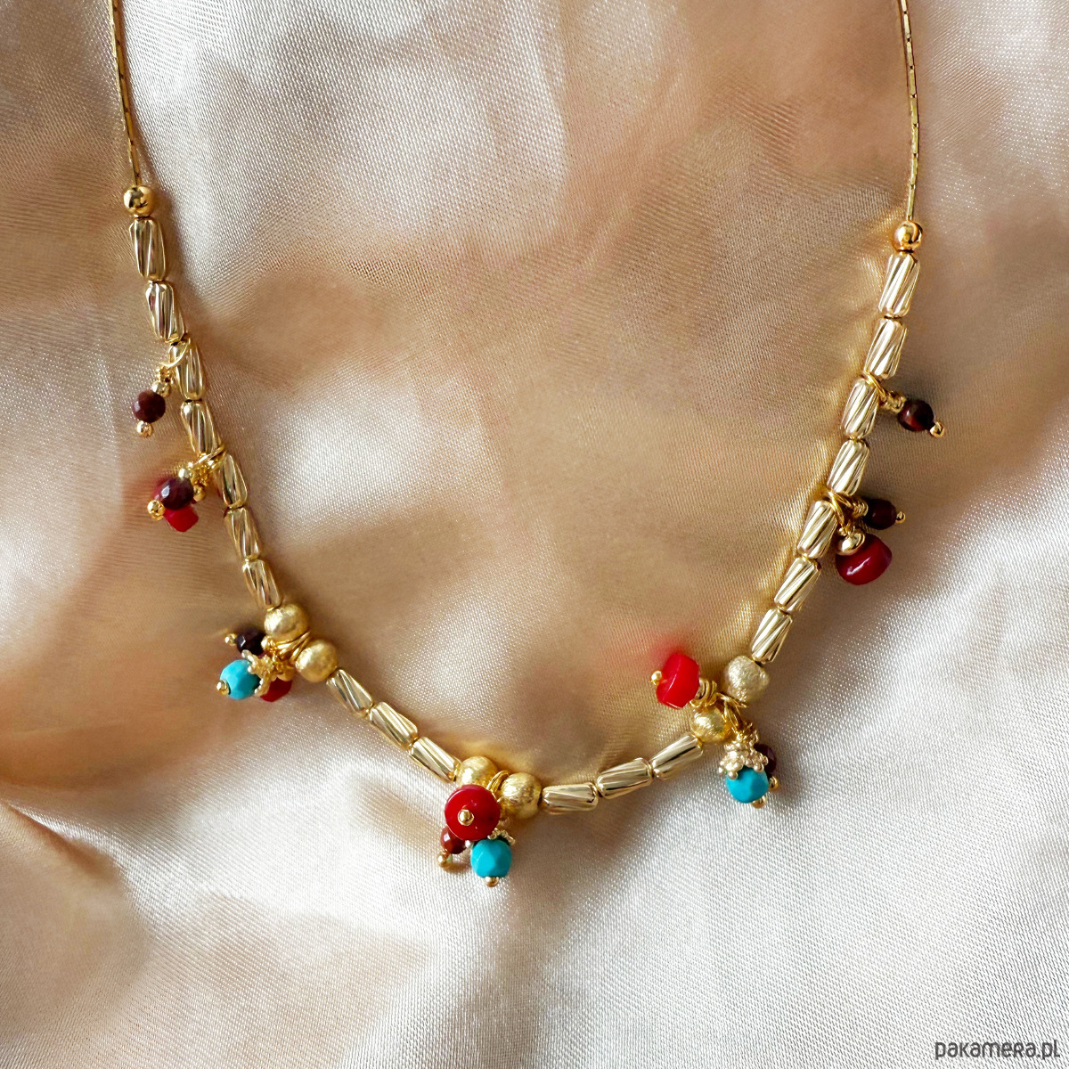 TRISKELIA NASZYJNIK , kamienie naturalne, turkus, koral