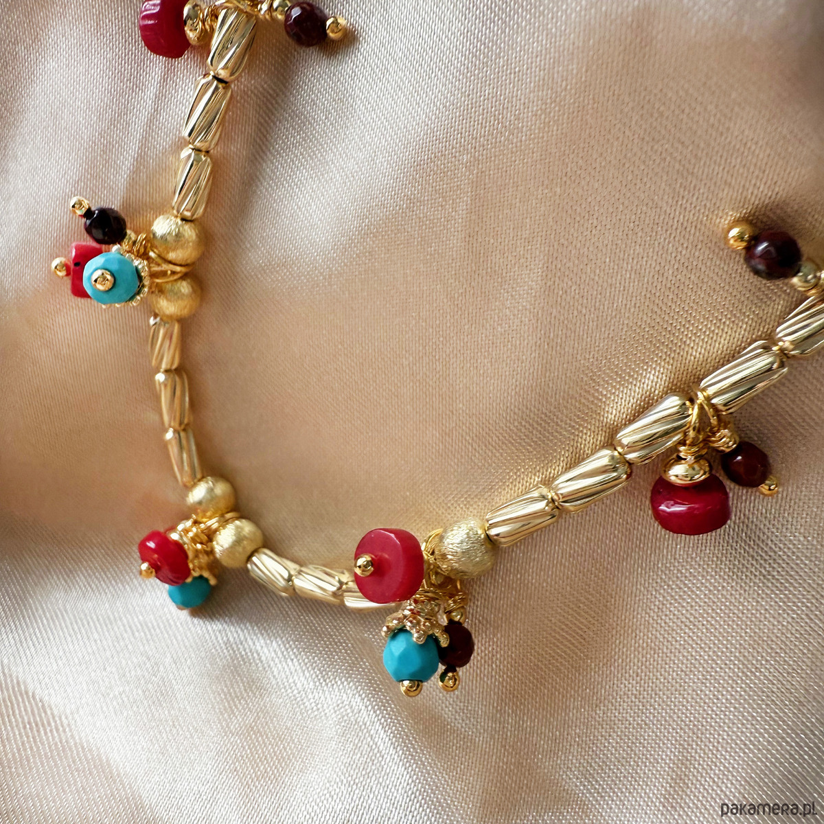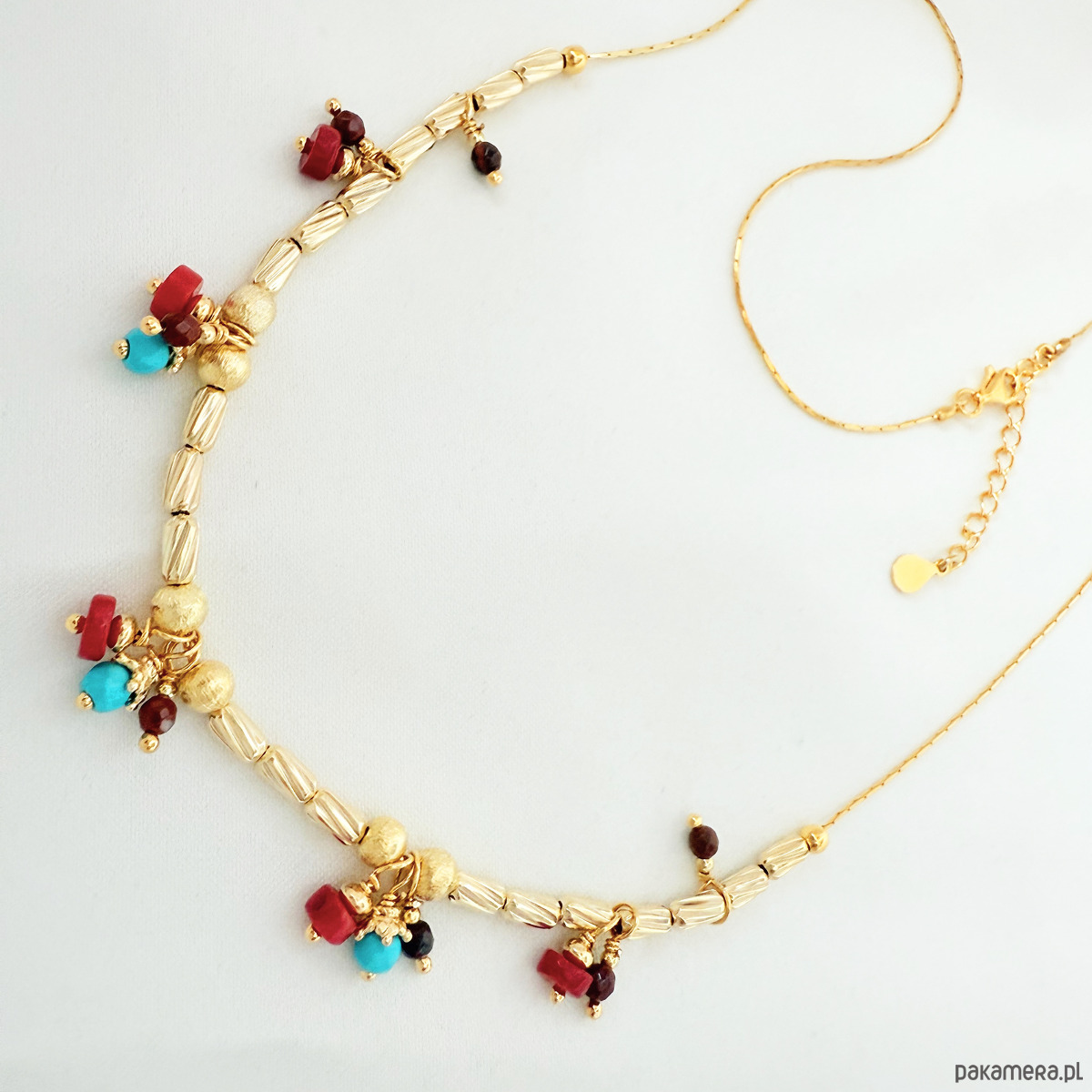 TRISKELIA NASZYJNIK , kamienie naturalne, turkus, koral