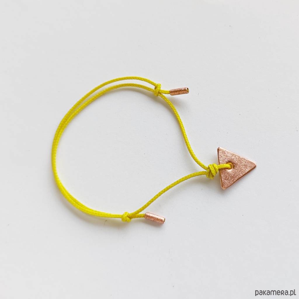 TRÓJKĄT bransoletka - uroczy dodatek. Idealna dla kobiet ceniące ładną oraz oryginalna biżuterię. Bransoletka wykonana jest z miedź, sztuczne, ozdobny sznurek. Długość zawieszki - ok. 1 cm. Szerokość zawieszki - ok. 1 cm.
