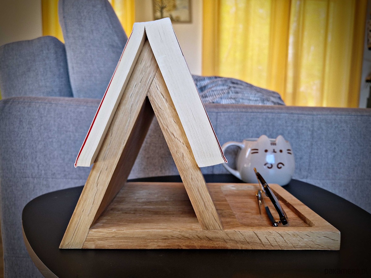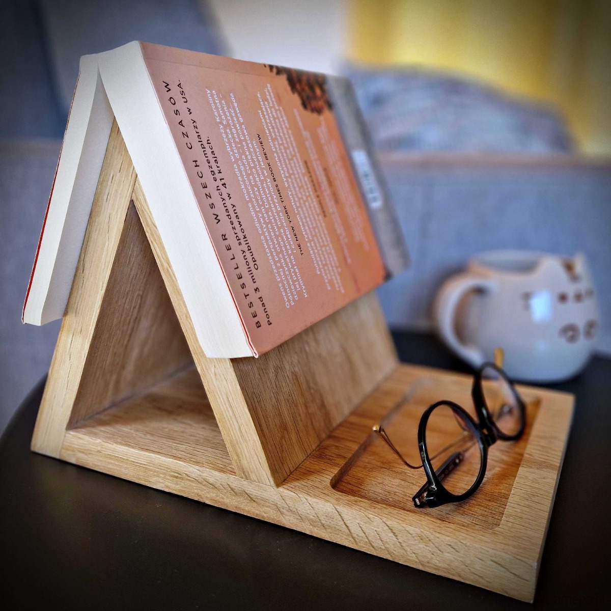W tej ofercie przedstawiamy coś, co lubią wszyscy miłośnicy papierowych, tradycyjnych książek. Specjalnie zaprojektowana podstawka w kształcie trójkąta, dodatkowo wyposażona z podfrezowane miejsce na okulary czy komórkę. Wszystko starannie wykonane z litego, naturalnego drewna dębowego, ręcznie szlifowane i olejowane.