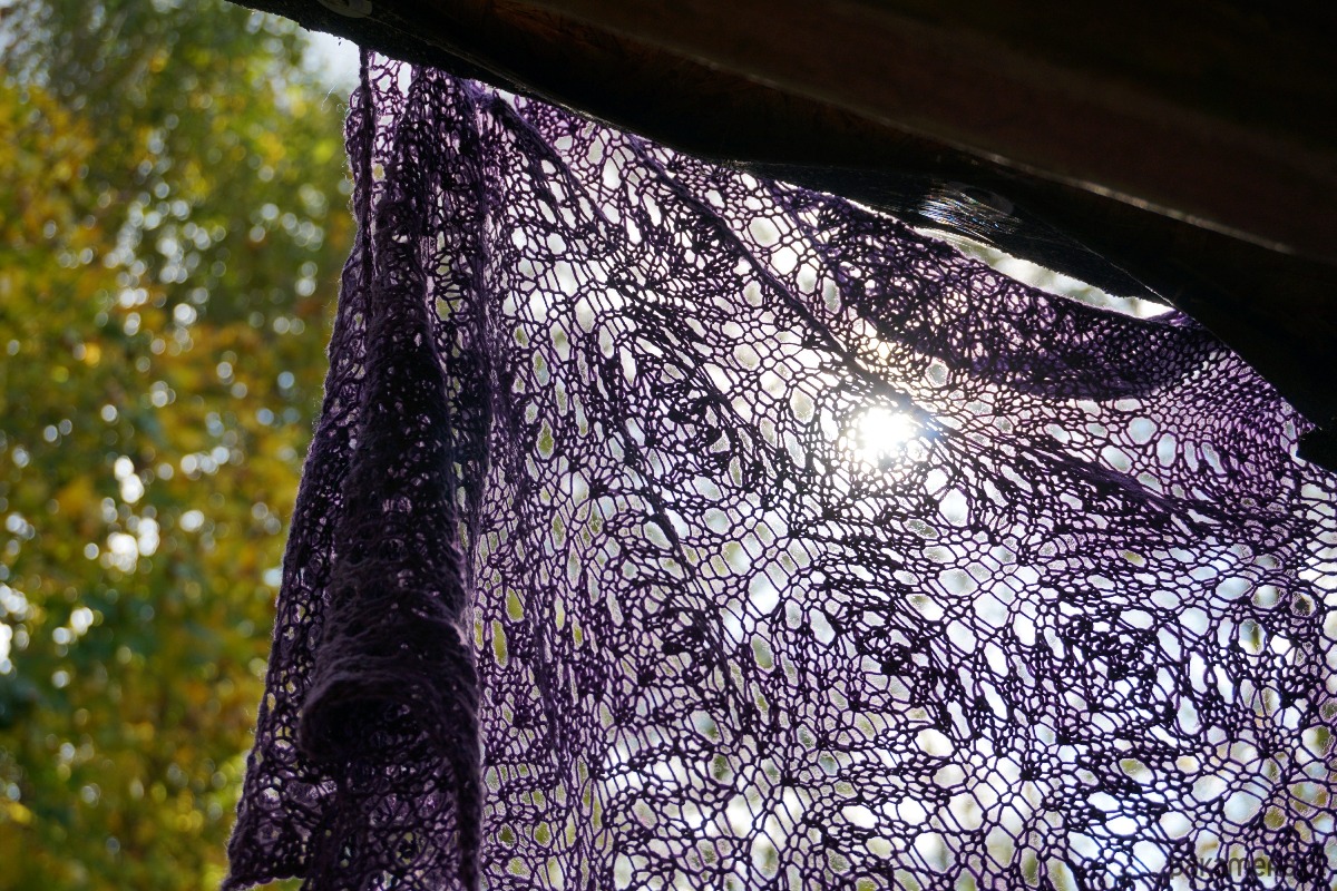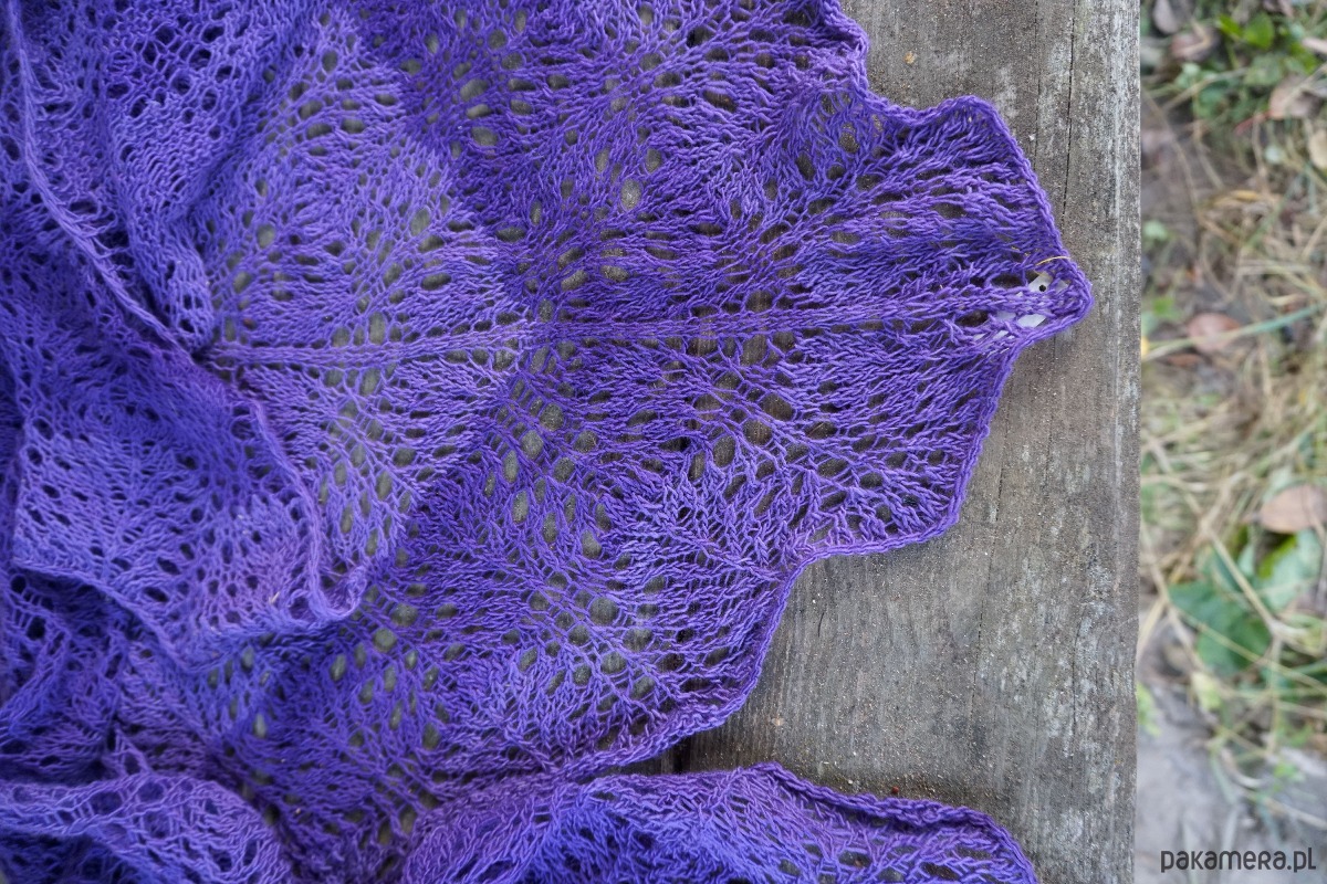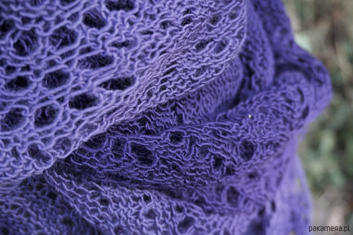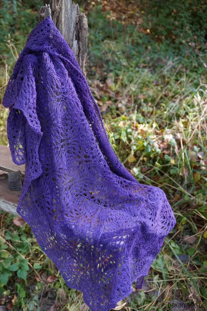 Trójkątny szal z jedwabiu i merino, ręcznie dziergany, fioletowy