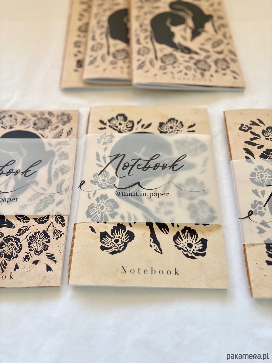 Notesy spięte ozdobnym paskiem i zapakowane w bibułkę idealnie na prezent.