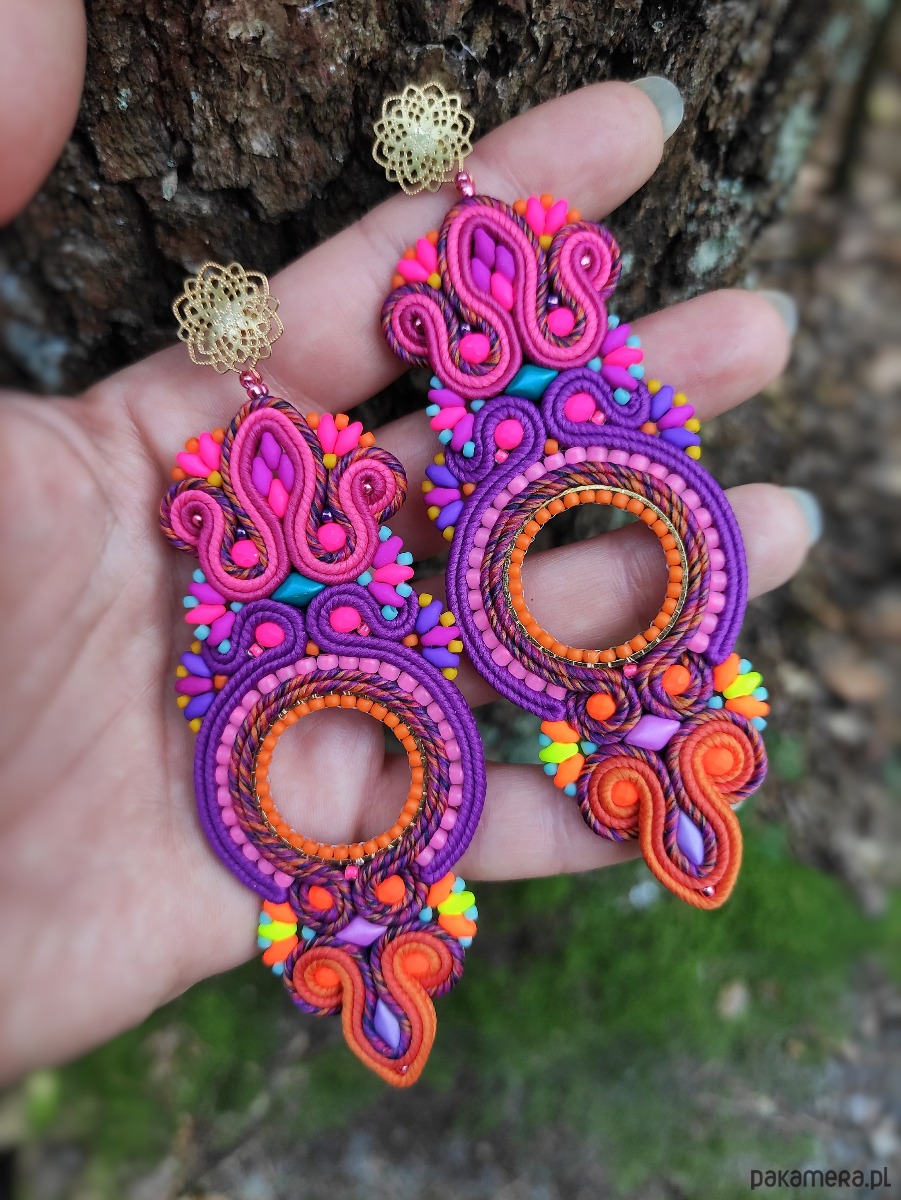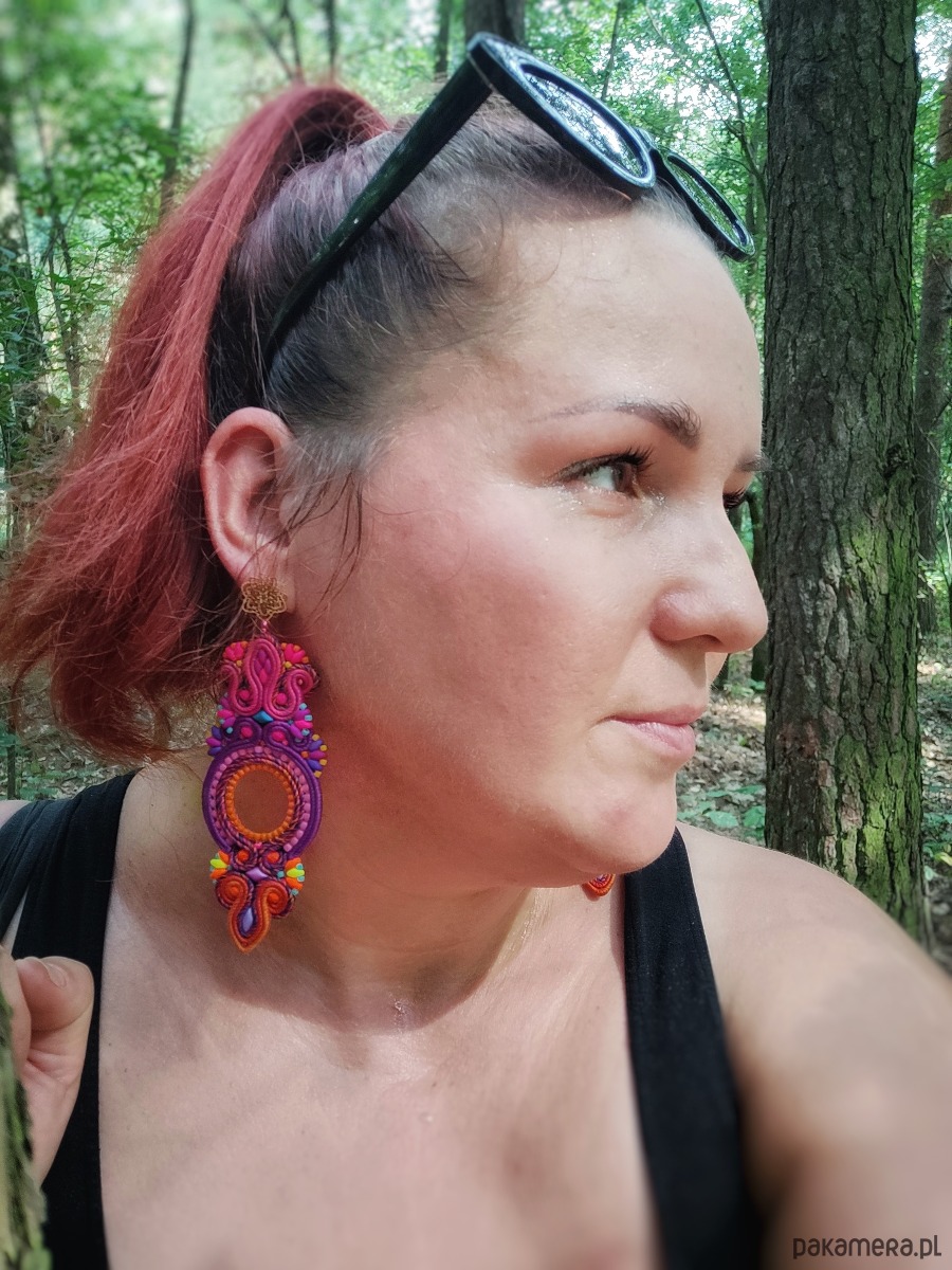 Kolczyki Tropical Geo Long są dwustronne, tył delikatnie wykończyłam koralikami.