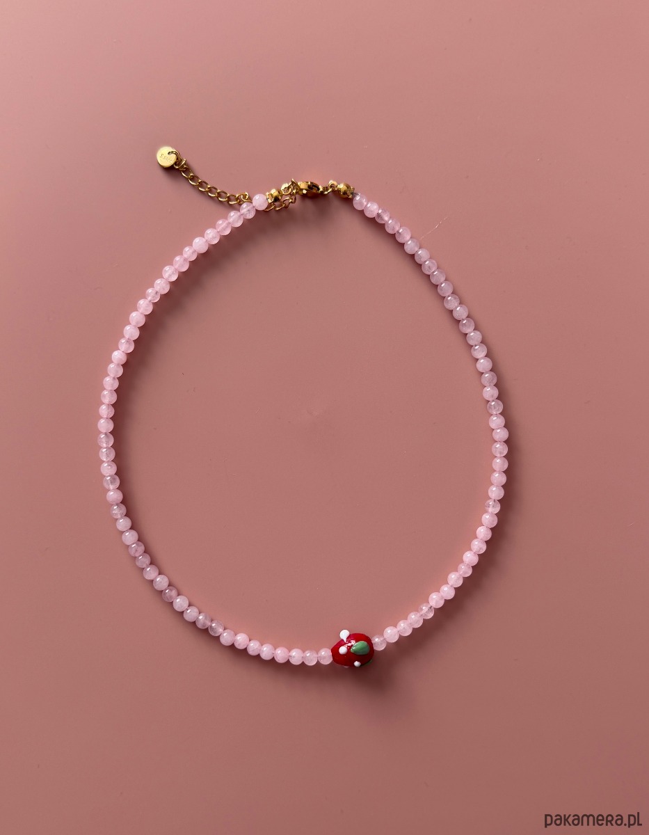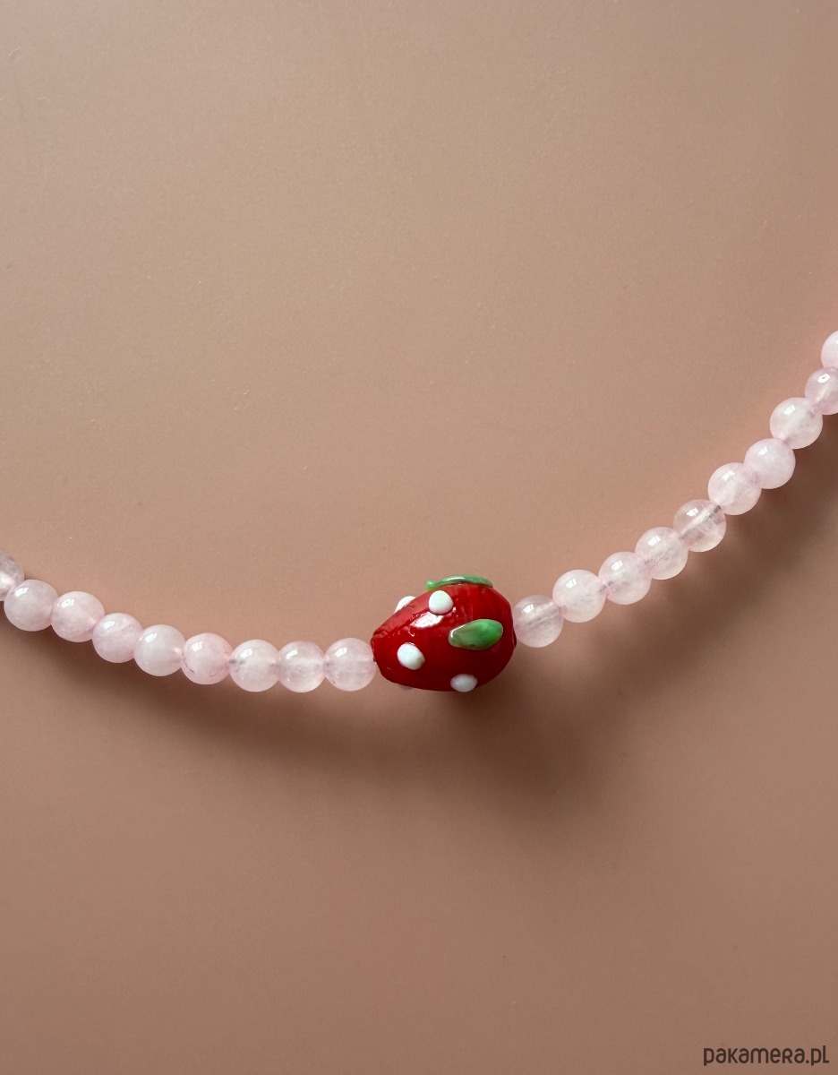 Naszyjnik z kwarcu różowego z truskawką. Wielkość kamieni 4mm