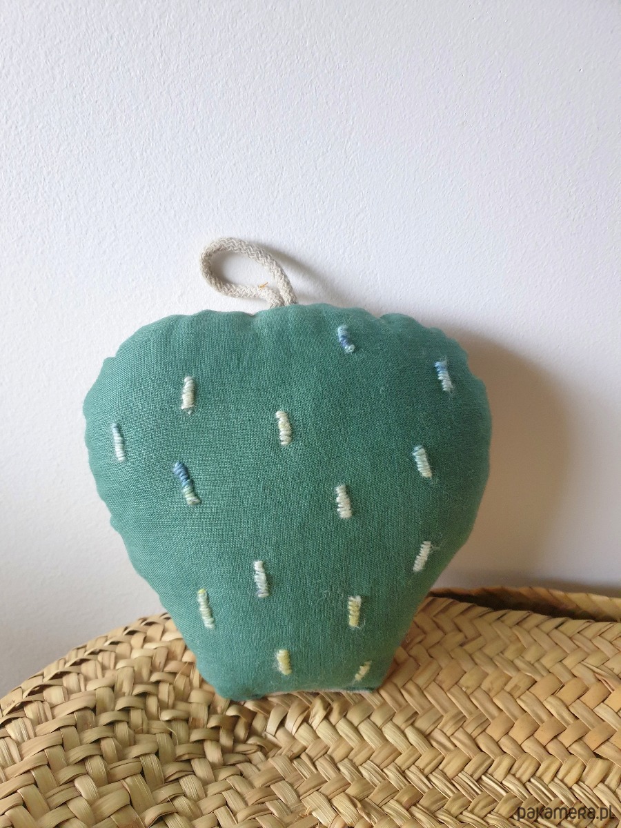 Lniana truskawka marki NANIBY, dekoracja pokoju, łóżeczka, wózka, zabawka... Wyszywana ręcznie barwioną włóczką merino.