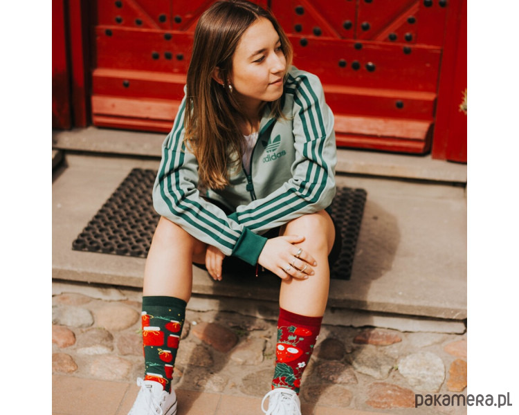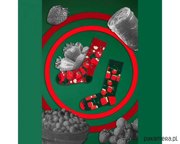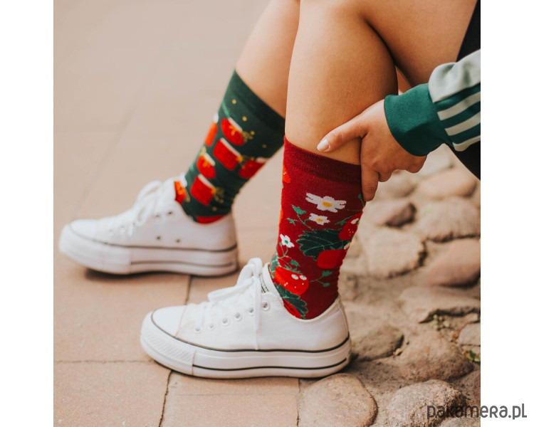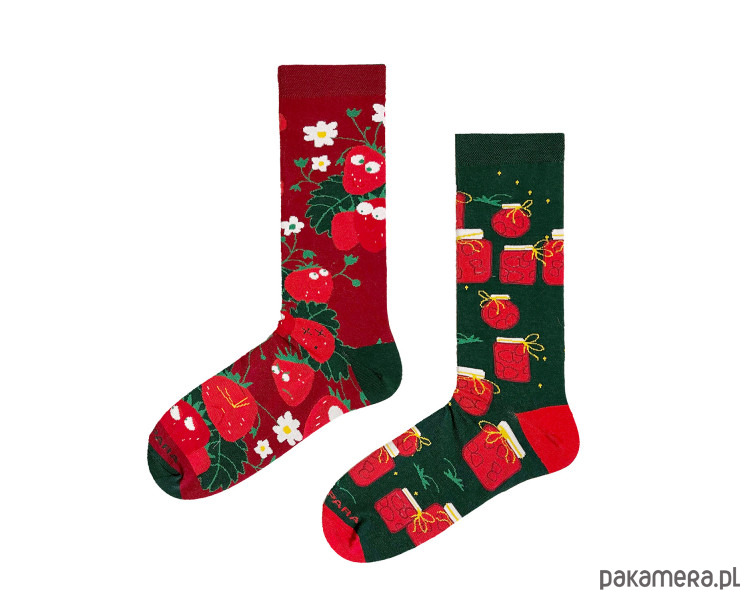 Zapomnij o nudnych, jednokolorowych skarpetkach i dodaj trochę zabawy do swojego życia z naszymi śmiesznymi skarpetkami nie do pary od Takapara. Wykonane z wysokiej jakości bawełny, te skarpetki zapewniają komfort i wytrzymałość, a ich wyjątkowy design z pewnością przyciągnie uwagę. Pierwsza skarpetka w kolorze czerwonym przedstawia soczyste truskawki, owoc pełen witamin i doskonały do deserów. Druga skarpetka w kolorze zielonym prezentuje słoiki z truskawkowym dżemem, słodkim dodatkiem do różnych potraw. Czy wiesz, że truskawki są jedynym owocem, który ma nasiona na zewnątrz? To dodatkowy smaczek, który sprawia, że te skarpetki są tak wyjątkowe jak ty!