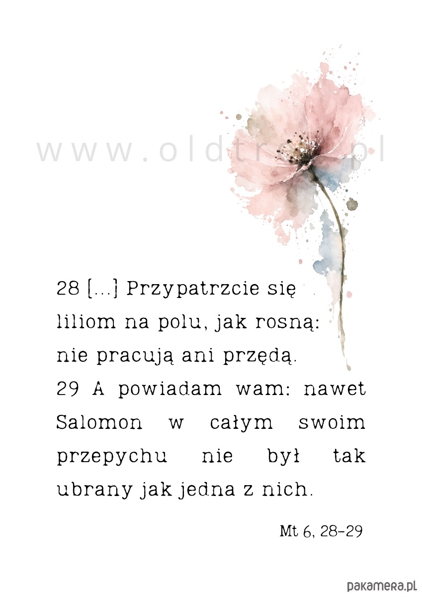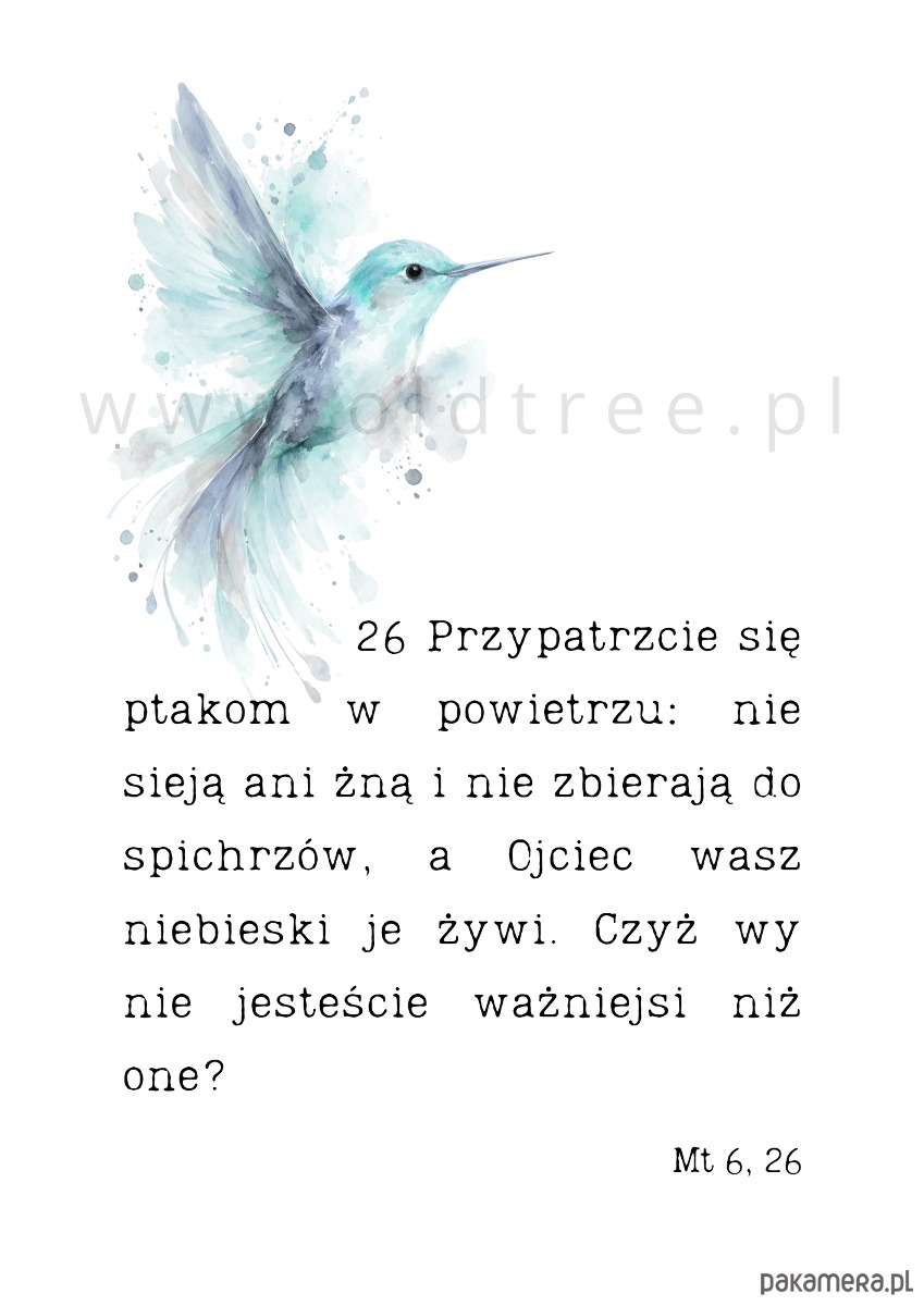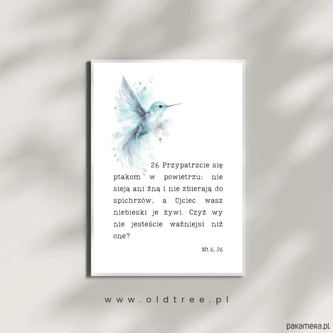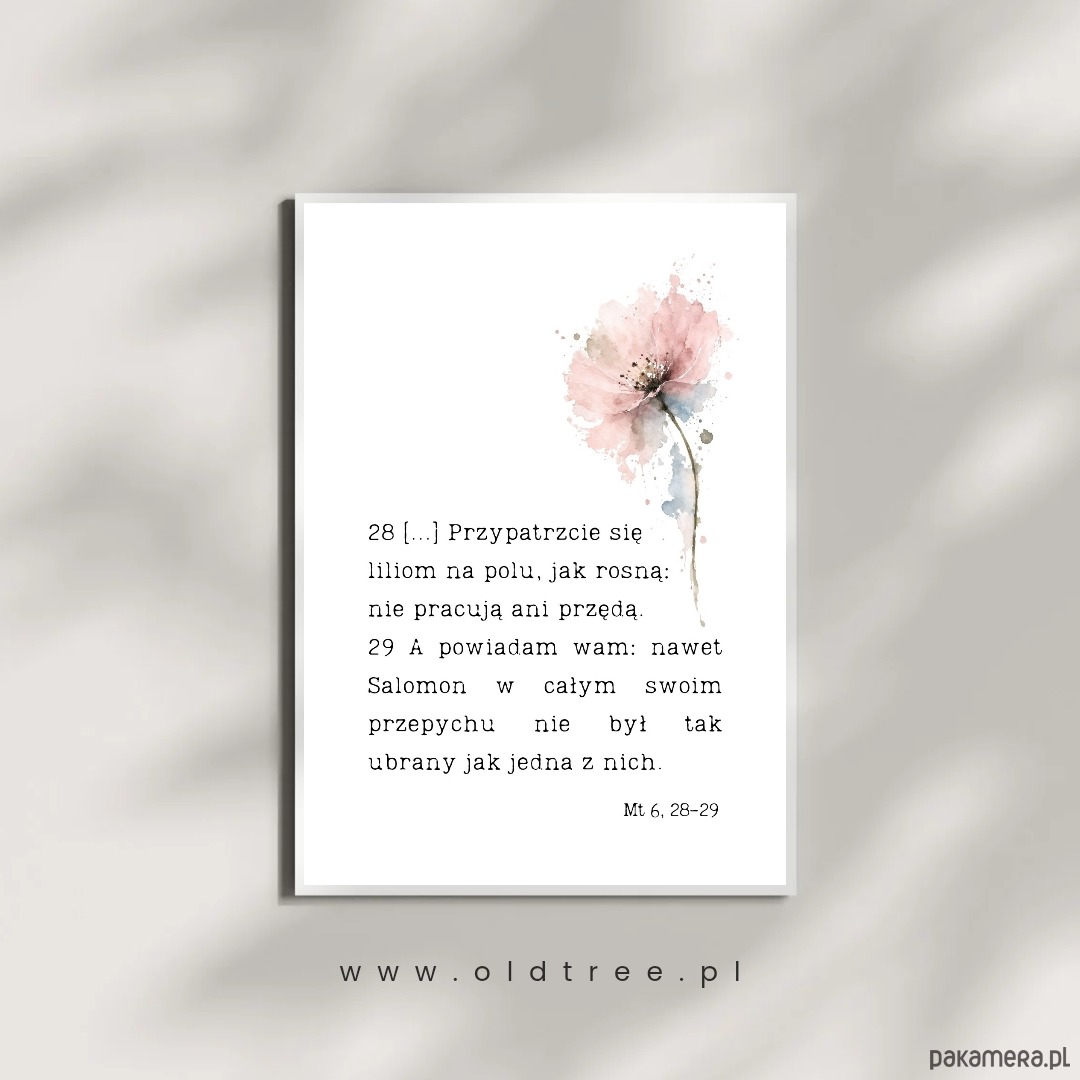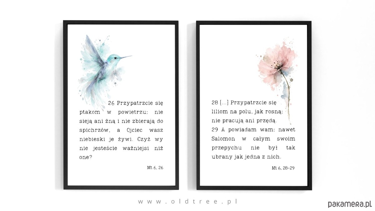 Delikatne akwarelowe ilustracje - ptak w powietrzu oraz polny kwiat -zostały stworzone specjalnie dla tej serii plakatów OLDTREE. Autorska grafika połączona z minimalistyczną typografią tworzy spokojną i harmonijną kompozycję, która wnosi do przestrzeni domu ciszę, refleksję i duchowe znaczenie.