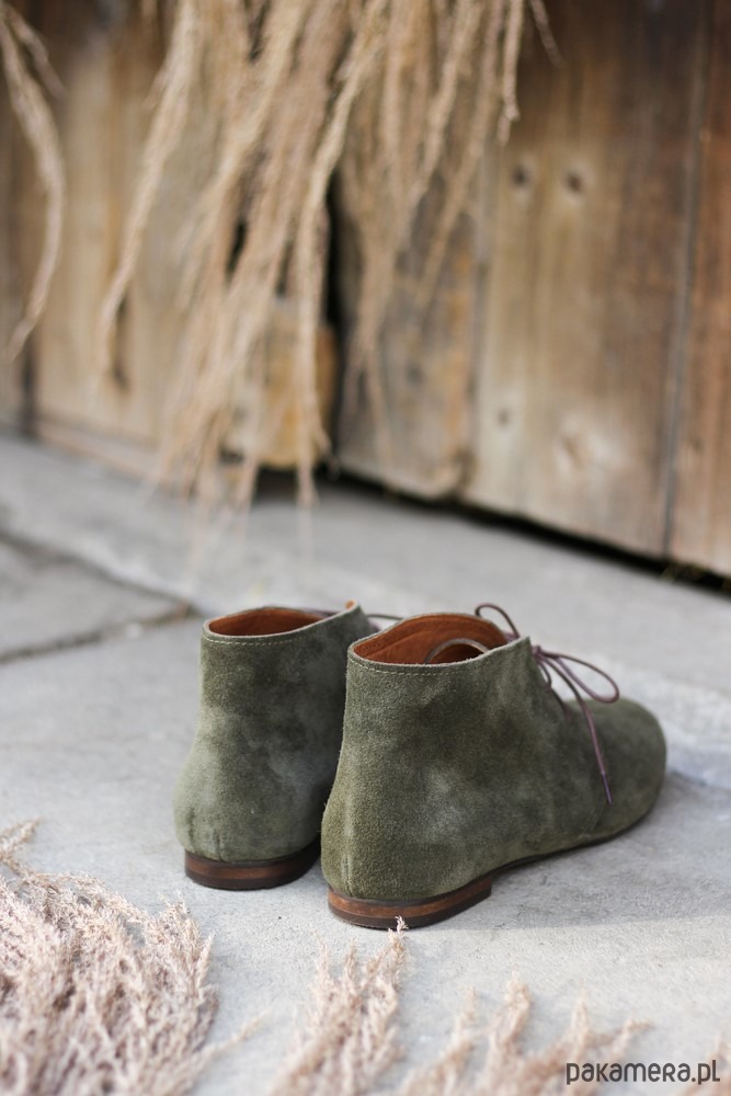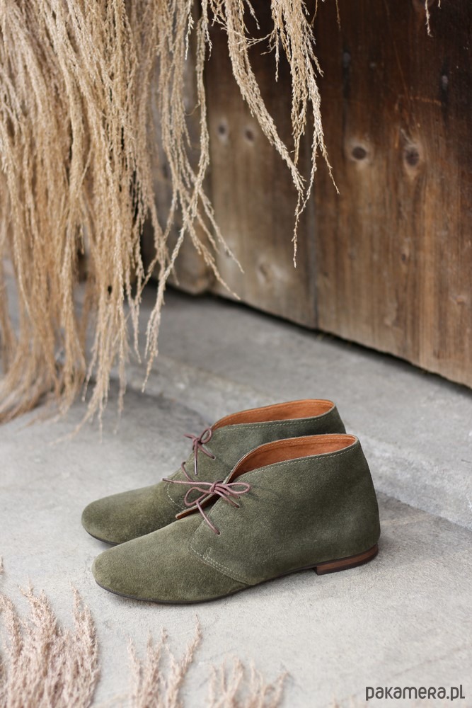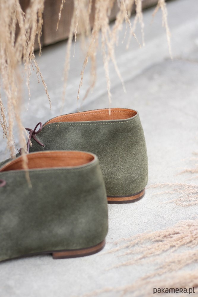 WIERZCH: skóra naturalna welurowa, kolor ciemna oliwka