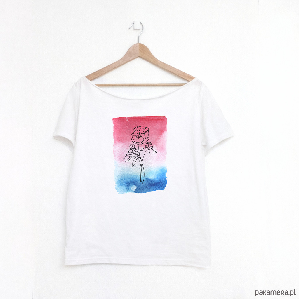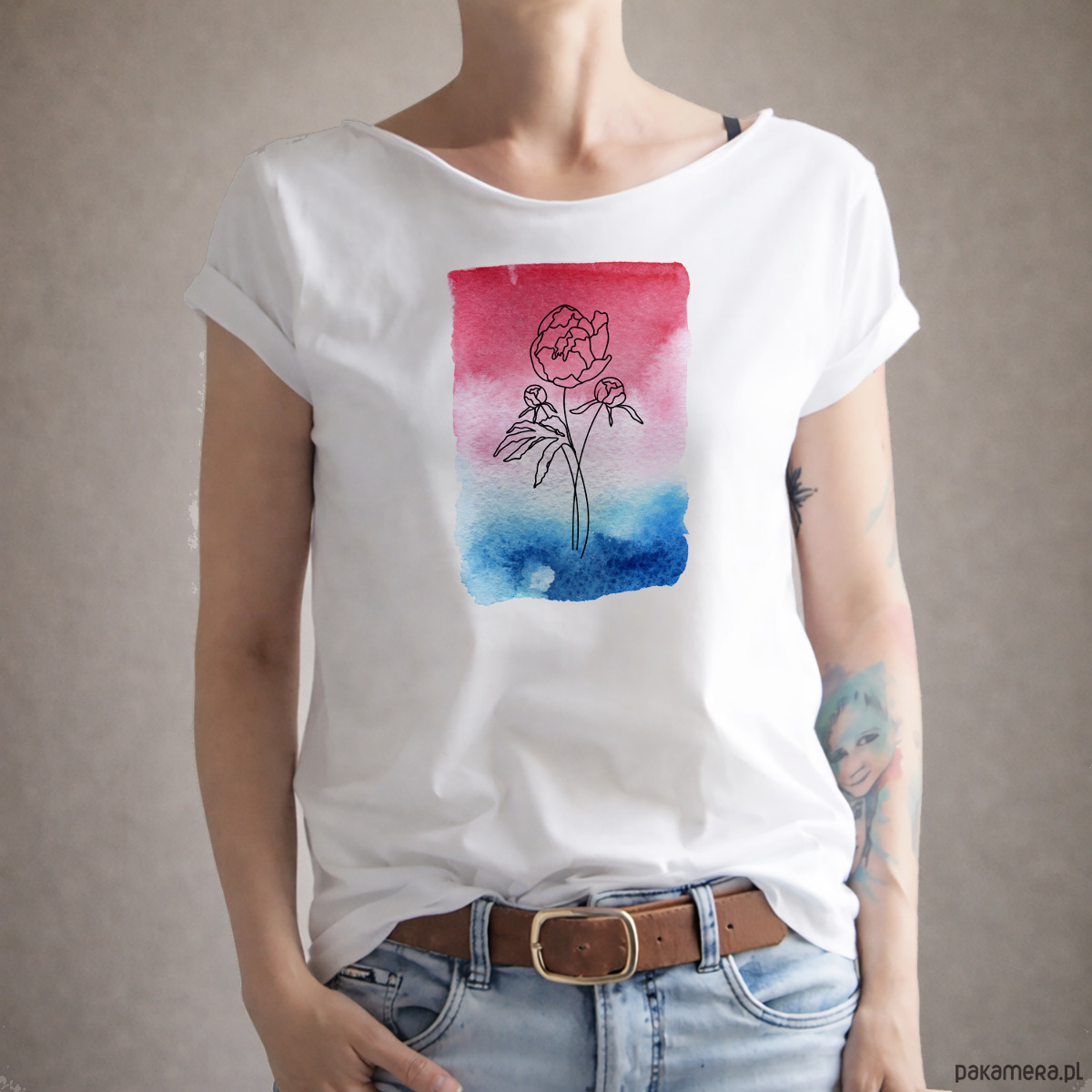 Kwiat narysowany minimalistycznie na tle trójkolorowej akwarelowej. Trochę sztuki, trochę luzu, dużo stylu.