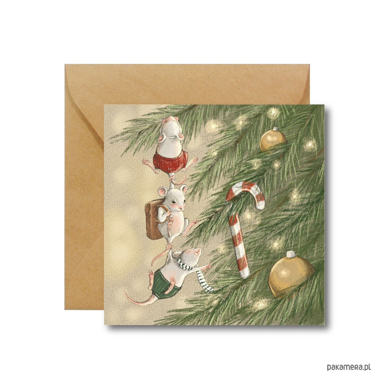 Odkryj wyjątkową kartkę świąteczną, idealną na Boże Narodzenie. Ręcznie ilustrowana kartka rozgrzeje serca układając w głowie historie myszek. Prześlij ją komuś wyjątkowemu, dodając humoru do świątecznych życzeń.