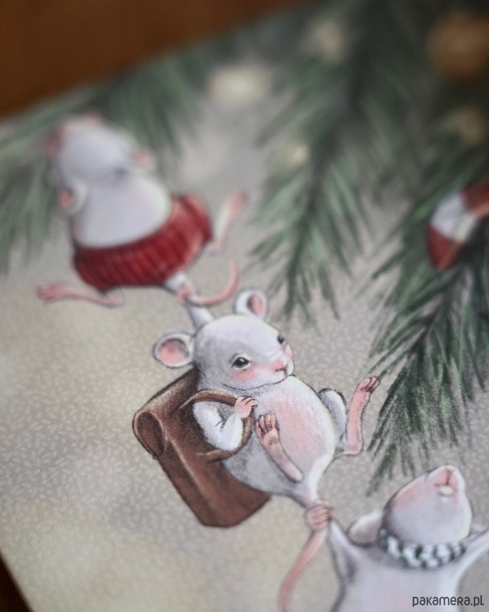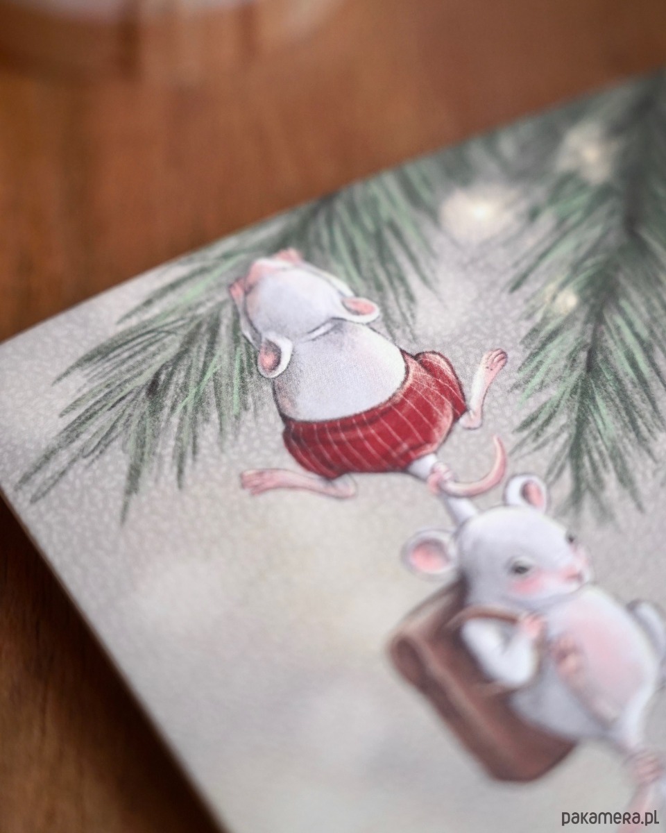 Odkryj wyjątkową kartkę świąteczną, idealną na Boże Narodzenie. Ręcznie ilustrowana kartka rozgrzeje serca układając w głowie historie myszek. Prześlij ją komuś wyjątkowemu, dodając humoru do świątecznych życzeń.