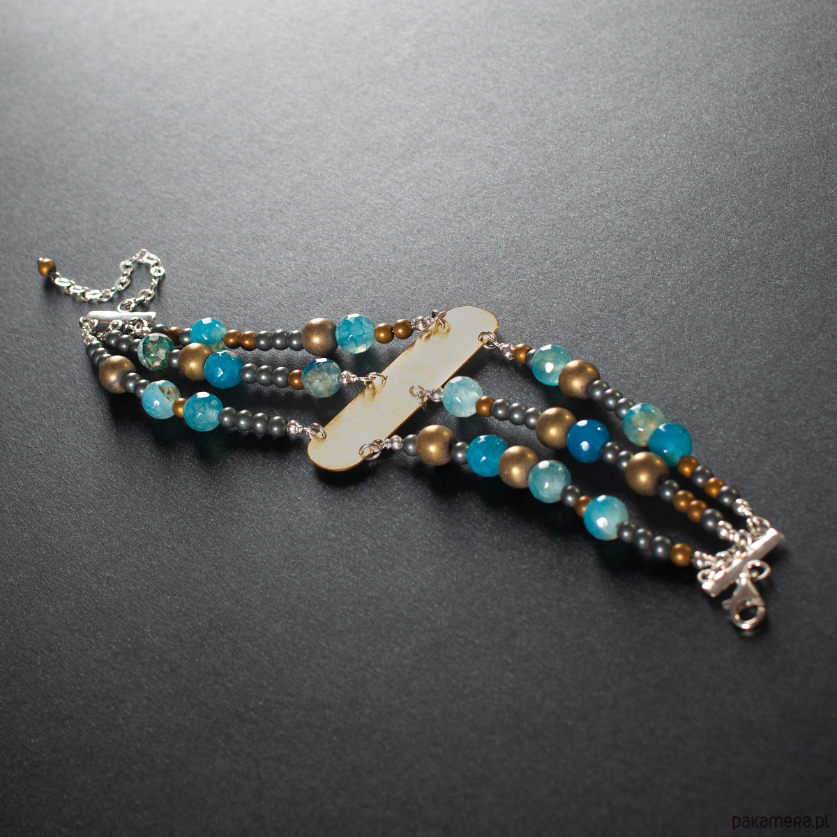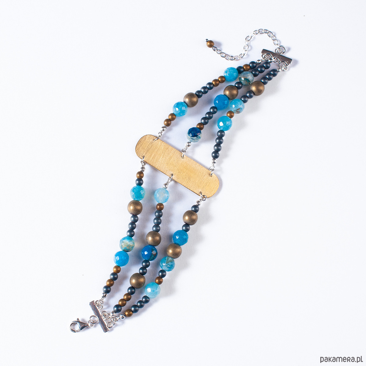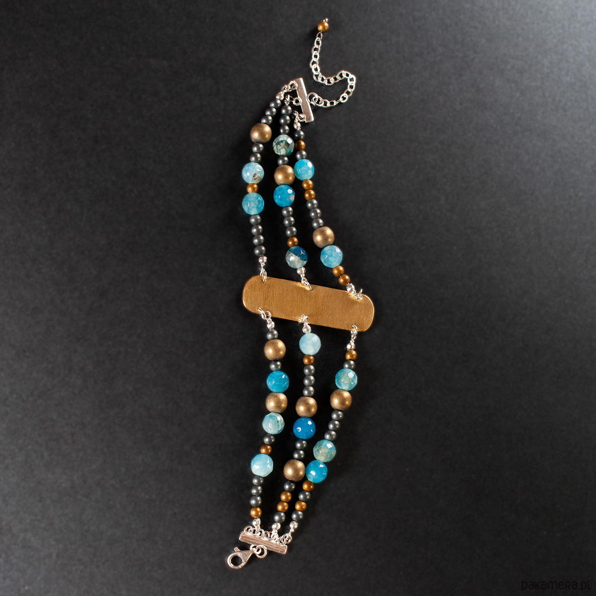 Trzyrzędowa bransoletka z agatem i mosiądzem.[SB9]