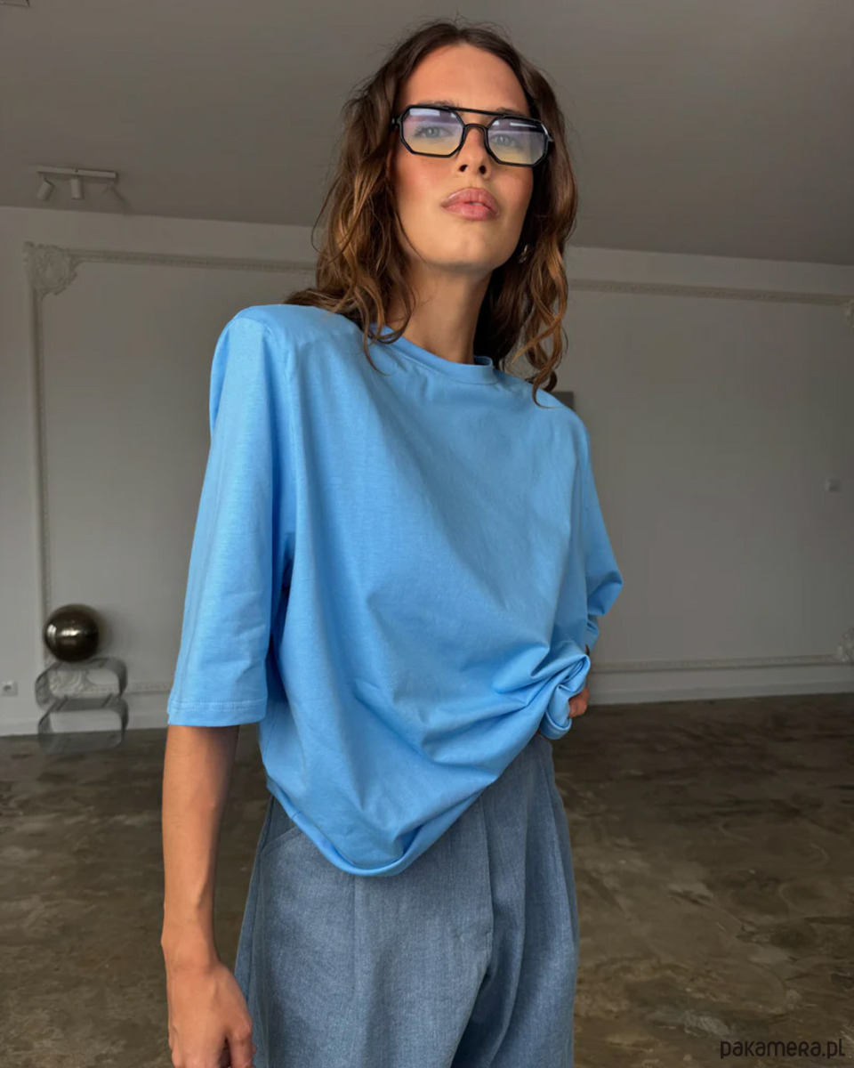 T-shirt Art Bonnie Blue to nowoczesna interpretacja minimalistycznej klasyki, w której prostota formy spotyka się z wyrazistym kolorem. Odcień bonnie blue wnosi do stylizacji świeżość i subtelną elegancję, pozostając jednocześnie ponadczasową bazą kapsułowej garderoby.