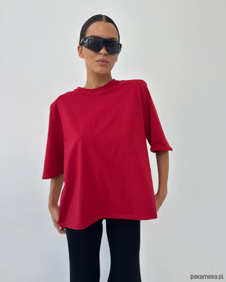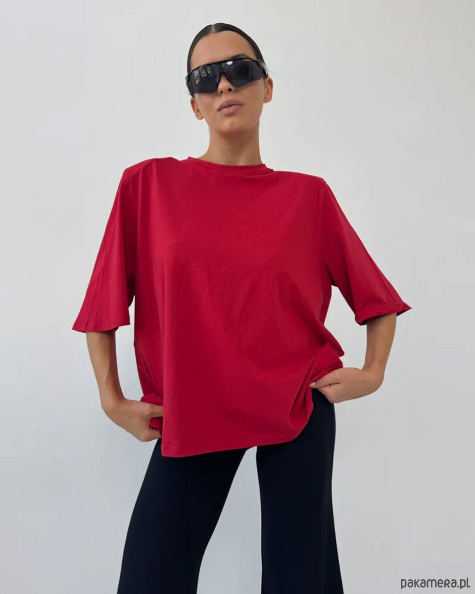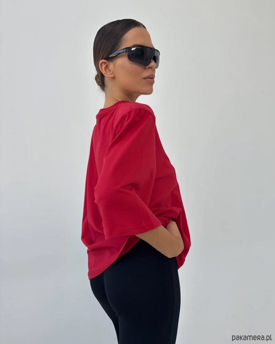 T-shirt Art Red to nowoczesna interpretacja minimalistycznej klasyki, w której prostota formy spotyka się z wyrazistym kolorem. Intensywna czerwień nadaje stylizacji energii i pewności siebie, pozostając jednocześnie elegancką i ponadczasową bazą kapsułowej garderoby.