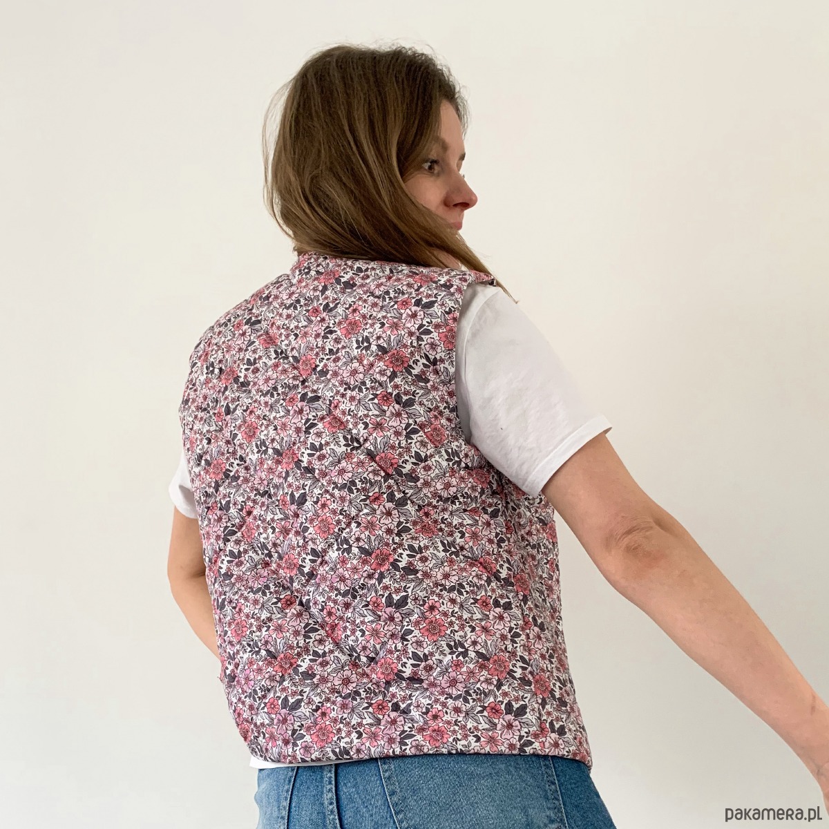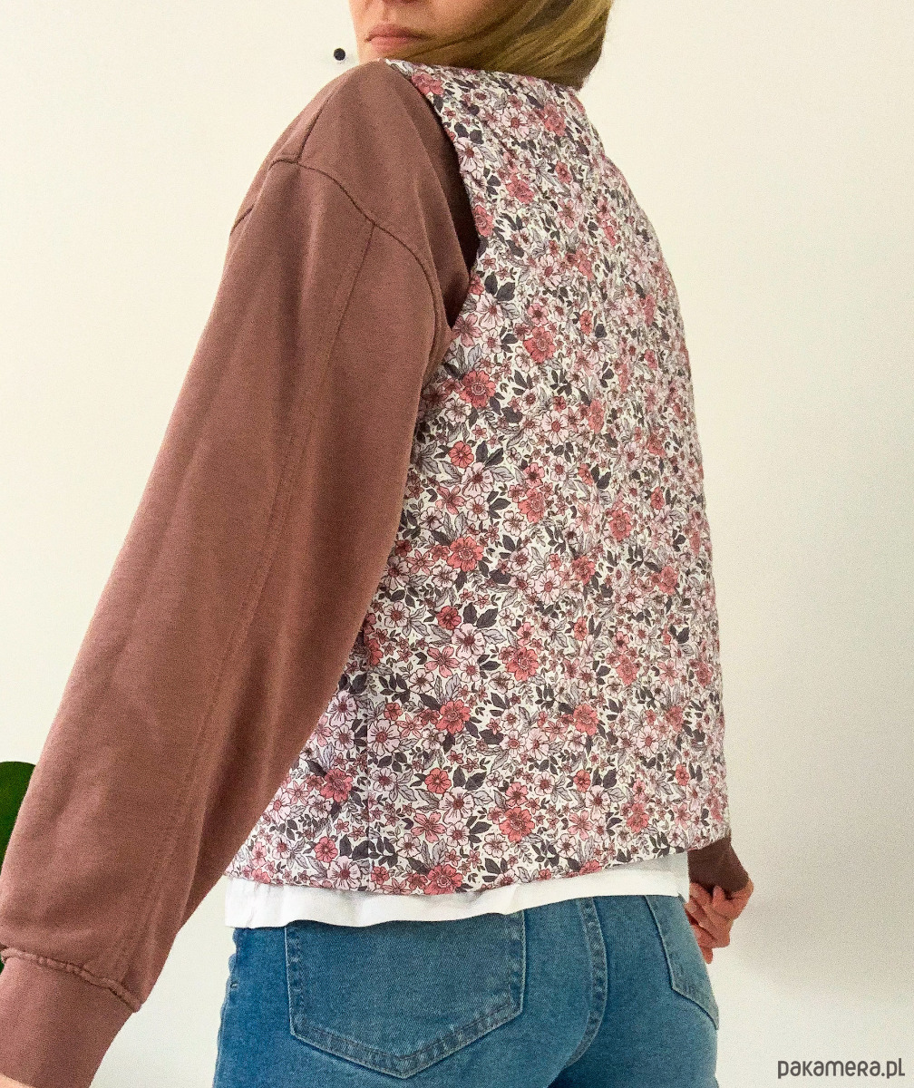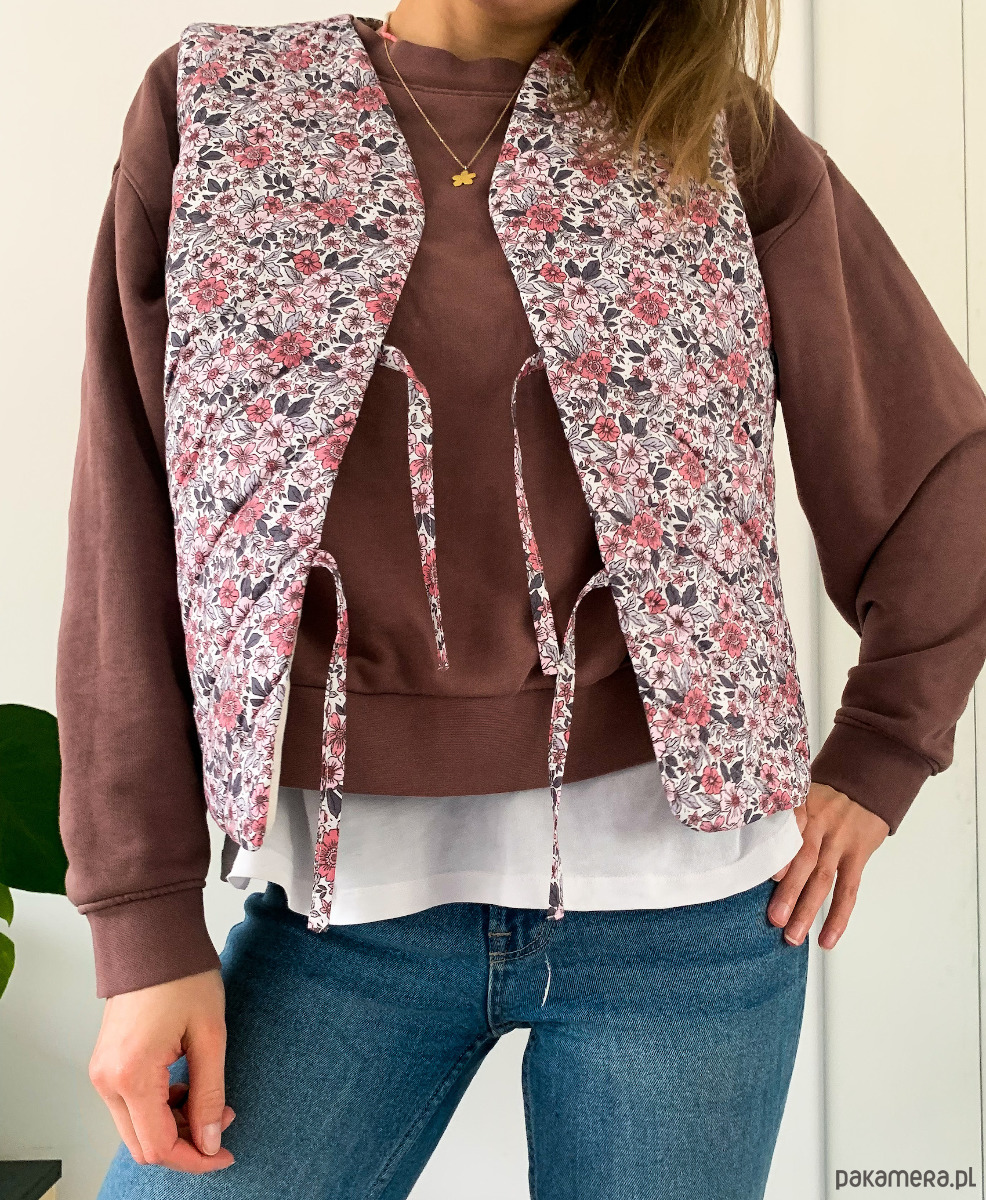 Dla osób o rozmiarze XS i S będzie to delikatny oversize, dla osób o rozmiarze M będzie bardziej dopasowana. Kamizelka spokojnie mieści się na luźniejszą bluzę.