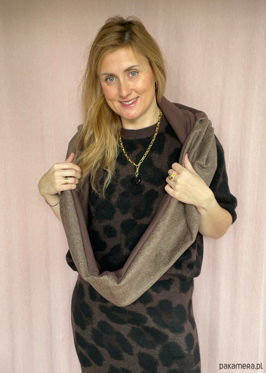 Brązowa mięciutka dresówka od środka, a na wierzchu wełna jagnięca.