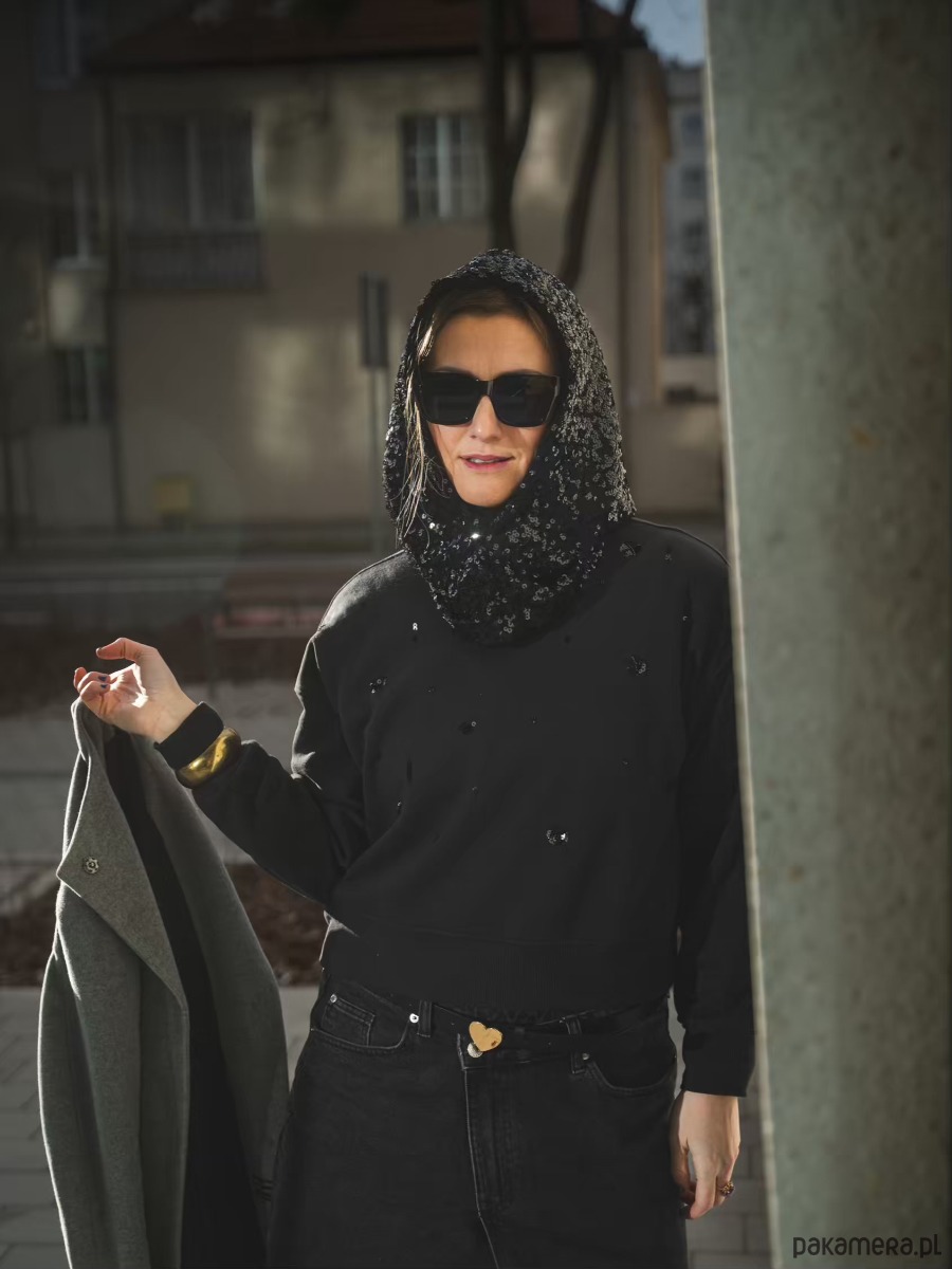 Tulik/kaptur czarny cekin