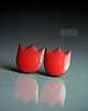 Ceramiczne kolczyki w formie sztyftów, ręcznie wykonane z delikatnej czekoladowobrązowej gliny kamionkowej, jednostronnie szkliwione mieszanką czerwonych szkliw z efektem plamek i subtelnym połyskiem, na antyalergicznych sztyftach w kolorze srebrnym. Długość ok.13mm.Polecam